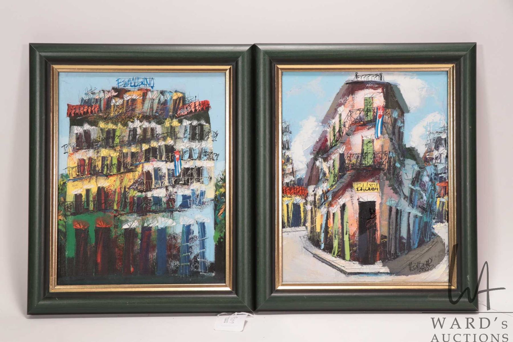 Two artist signed framed acrylic on canvas paintings, titled on verso, "Habana Cuba", both 9 1/2" X