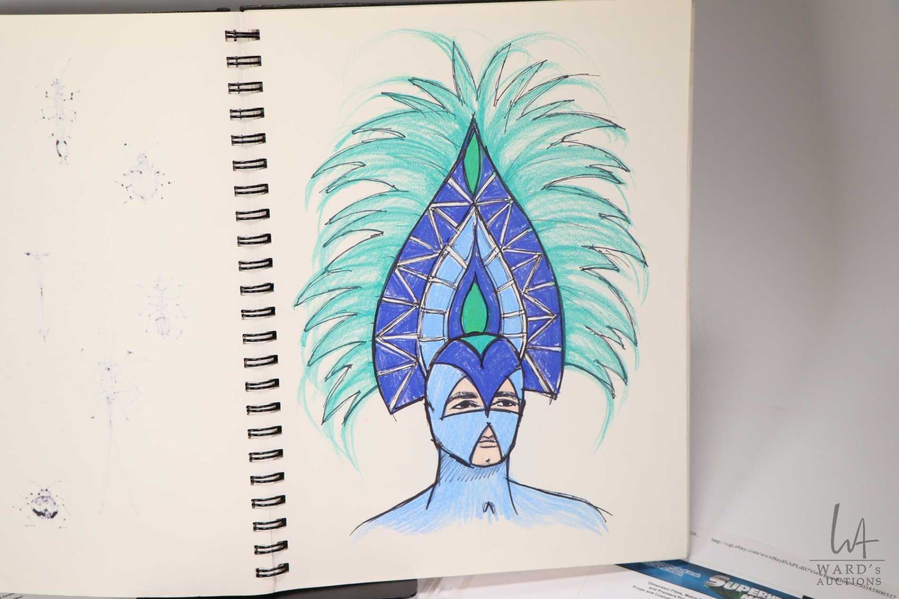 Two authentic movie props from the "Superhero Movie" including Rich Riker (Drake Bell) screen used gold coloured ring and screen used costume design sketchbook, both with original Premiere Props certificate of authenticity