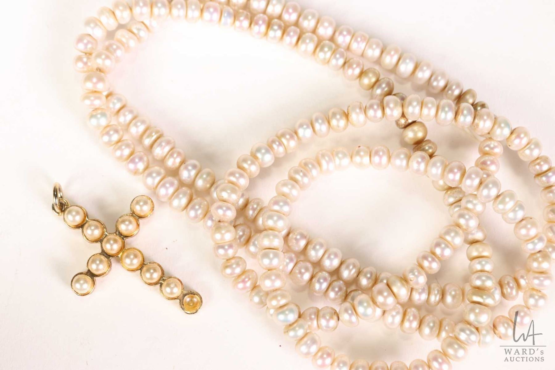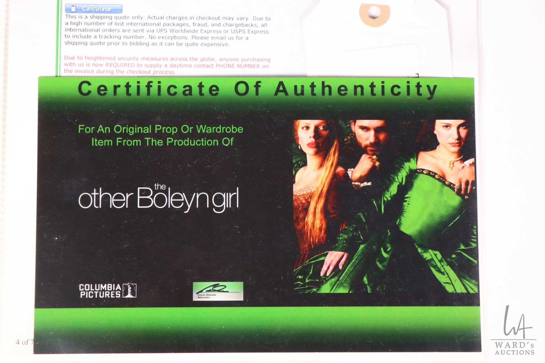 Two authenticity movie props from The Other Boleyn Girl including cross necklace worn by Natalie Portman ( faux pearl with last bead missing, as per COA) plus 32" genuine pearl necklace also worn by Natalie Portman (Anne Boleyn). Includes Columbia Pictures certificate of authenticity