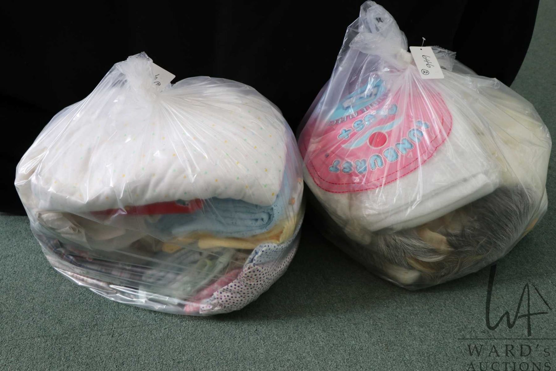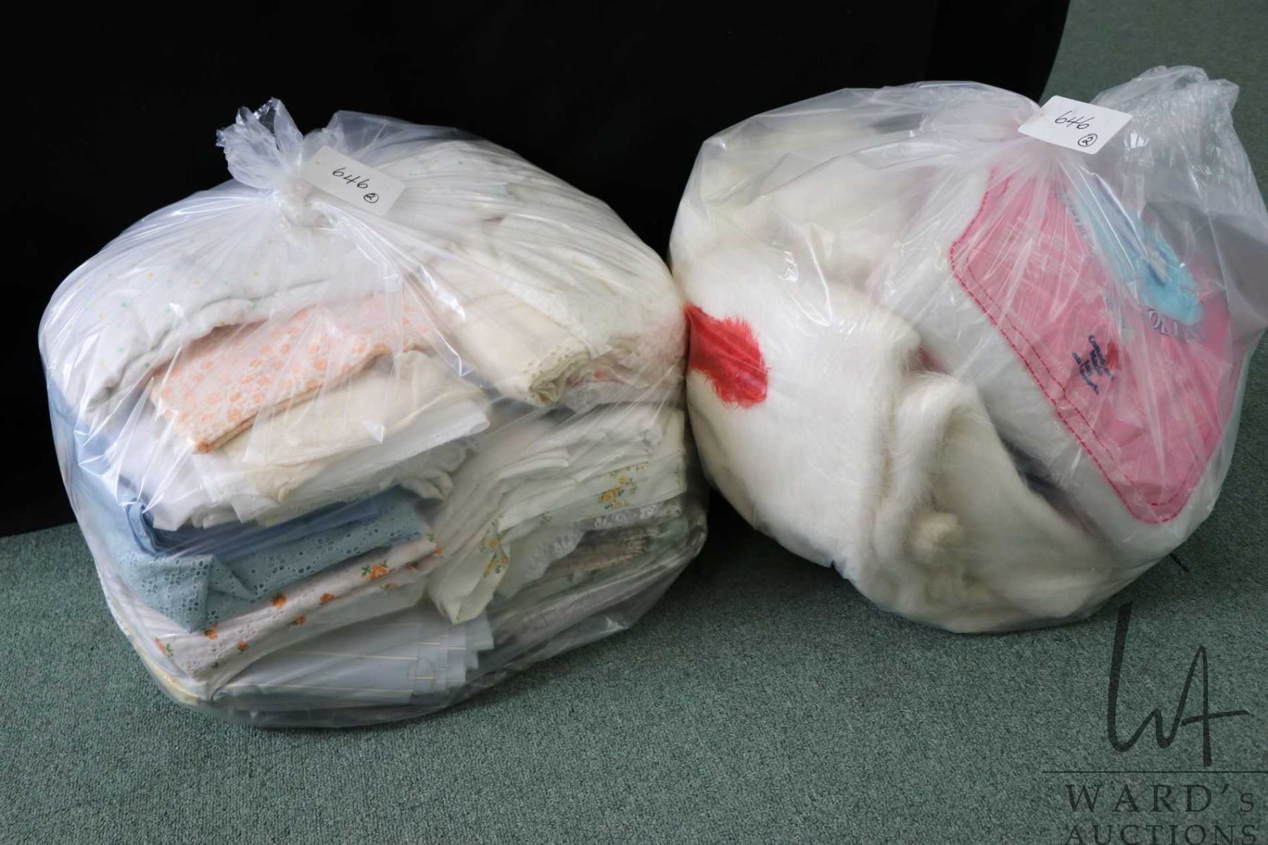 Two bags of fabric including flannel, cotton, eyelet, faux fur etc.