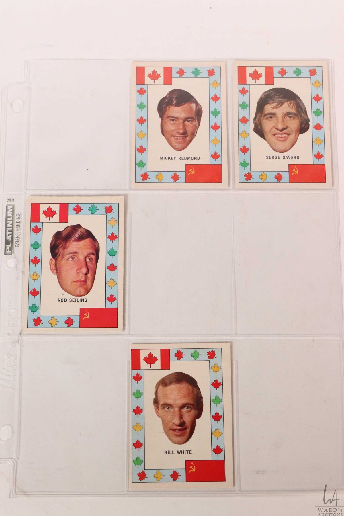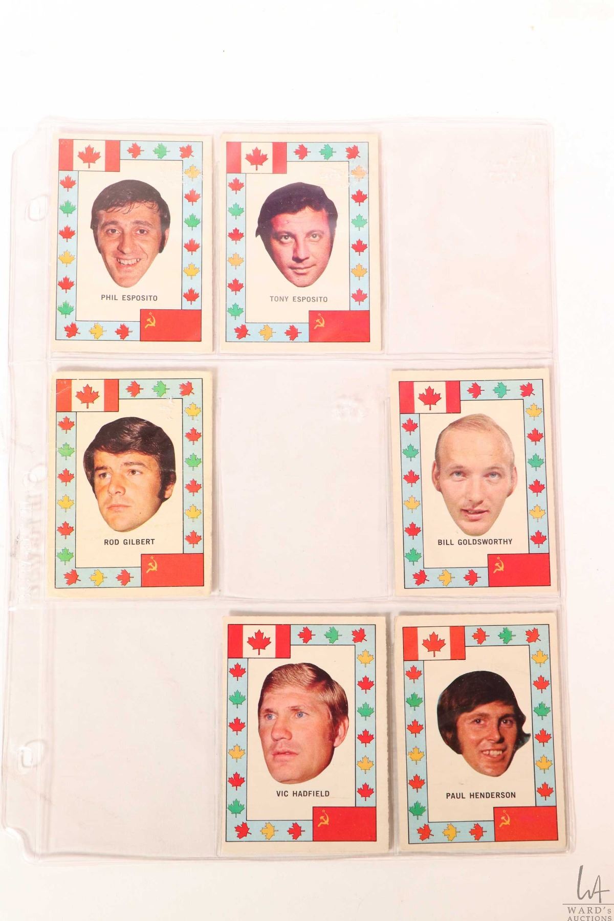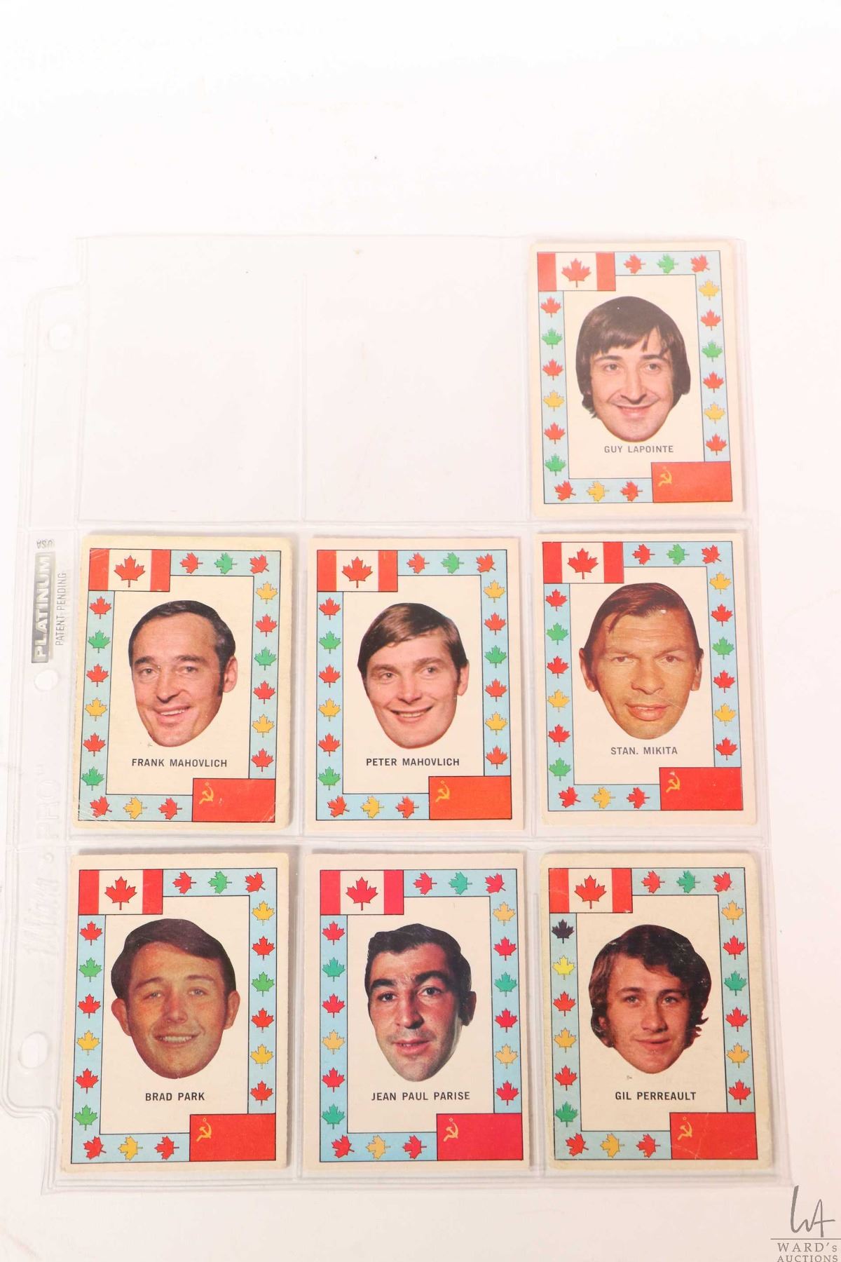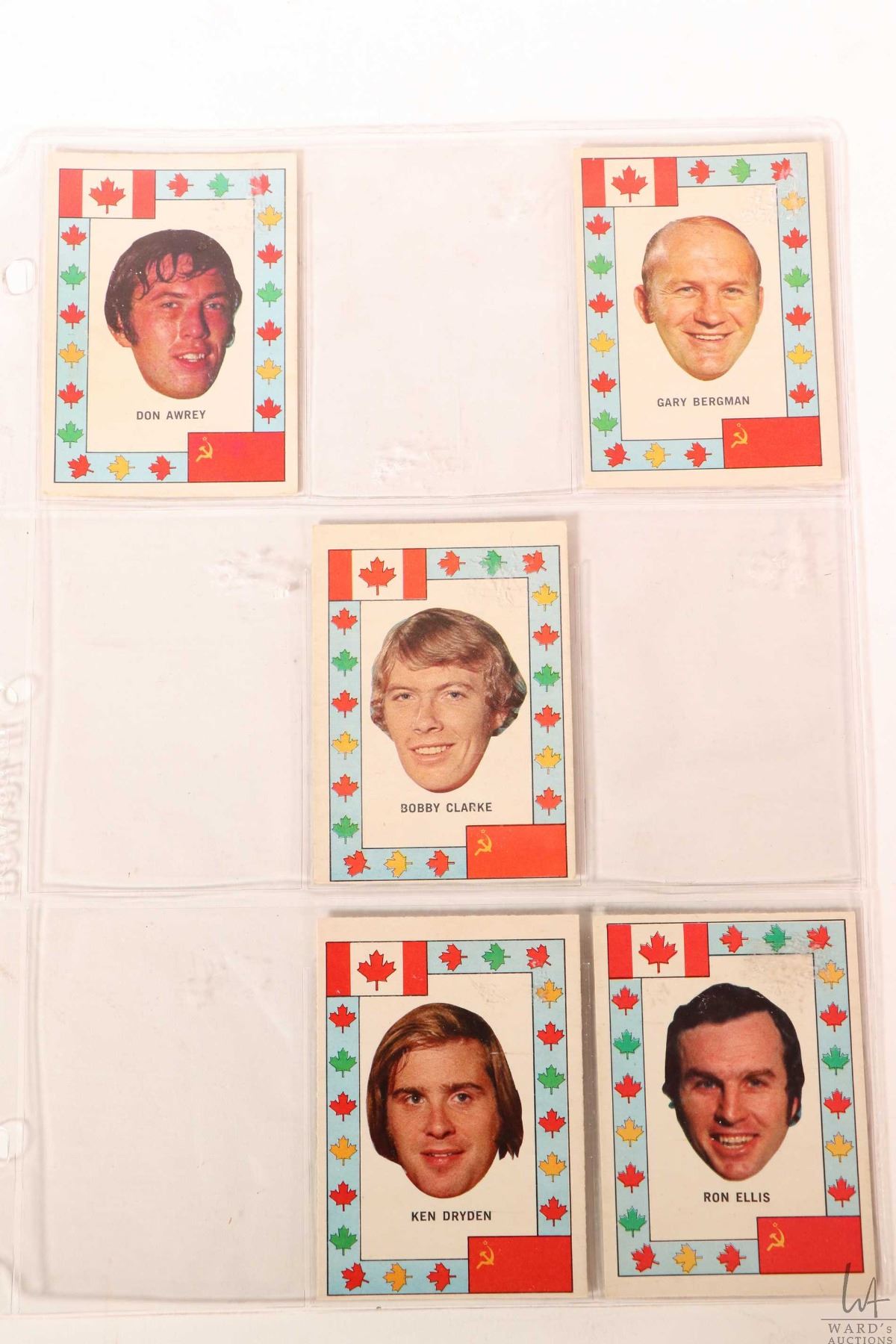Two binders of hockey cards including a binder containing 22 count of 1972 Team Canada collector cards and 208 assorted promotional photo cards dating 1972 and 1976 Team Canada cards plus a binder containing 175 count of 2002 Olympic Team Canada hockey team cards plus five Team Canada Magazine, assorted newer dates