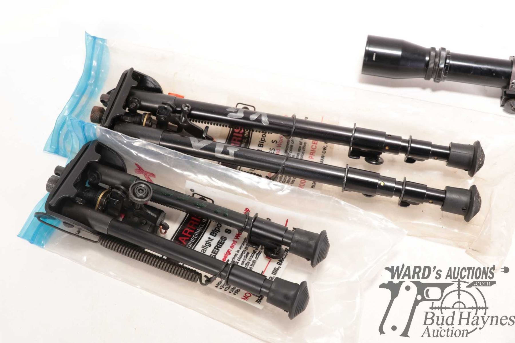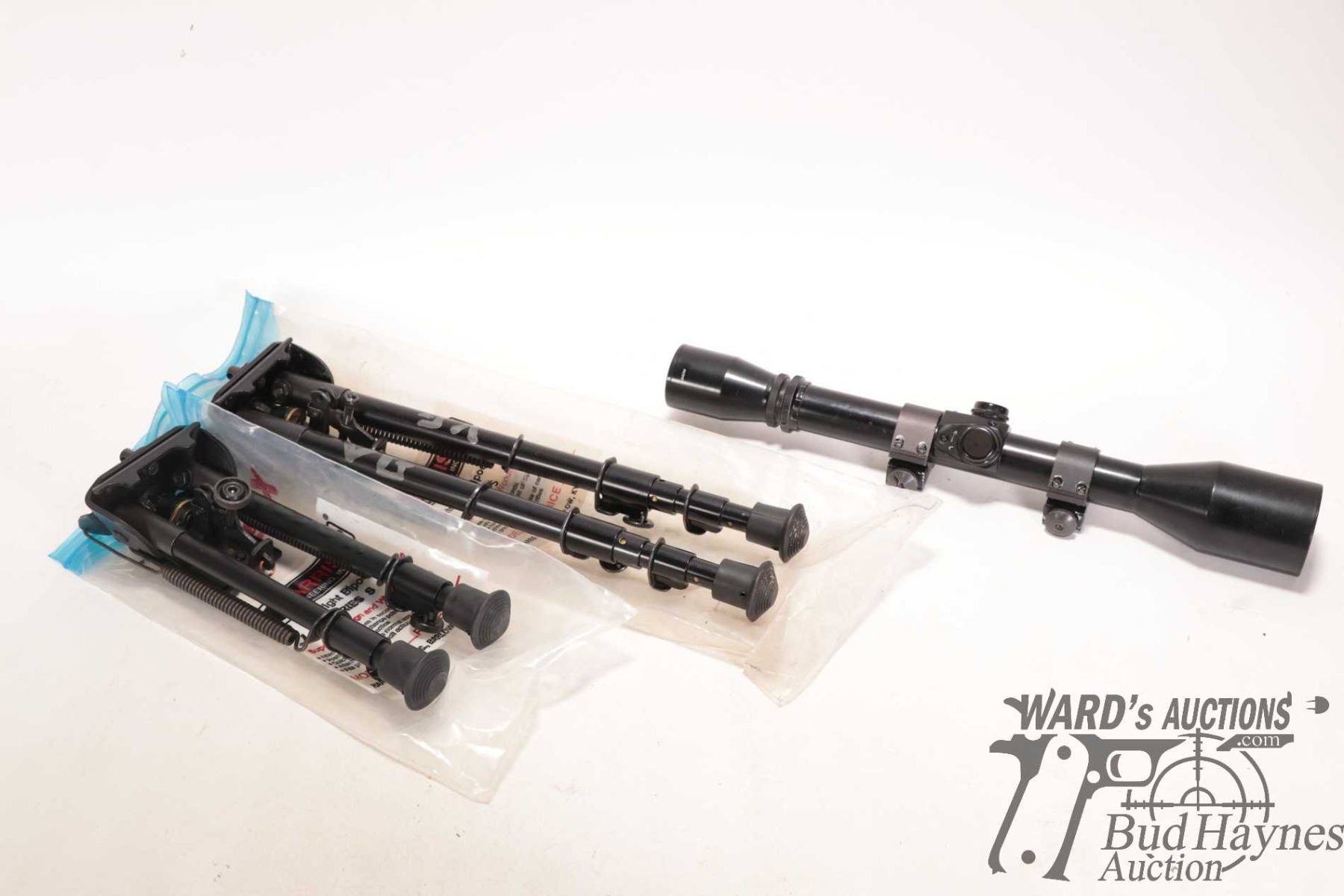 Two bipods including 8" and 12" plus a sportsman 4-9X40 scope, note: cross hairs are loose.