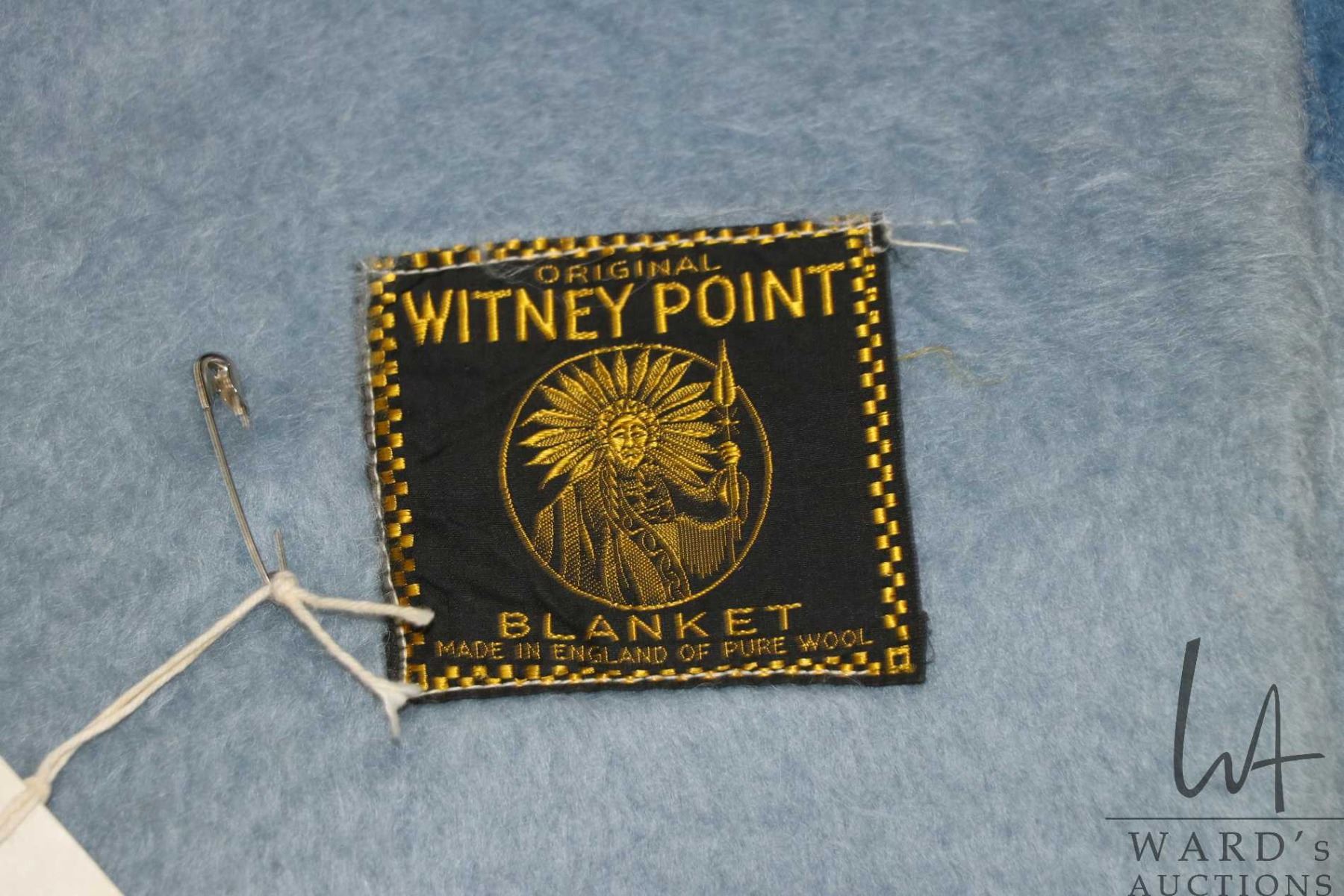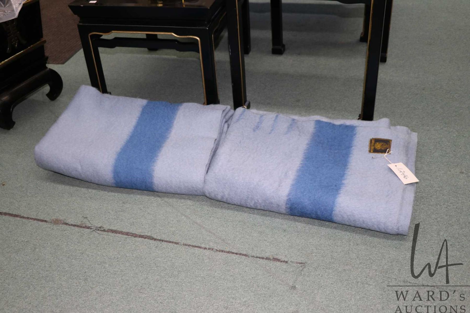 Two blue English made, Whitney Point pure wool blankets, each approximately 92" X 78, one marked with four points