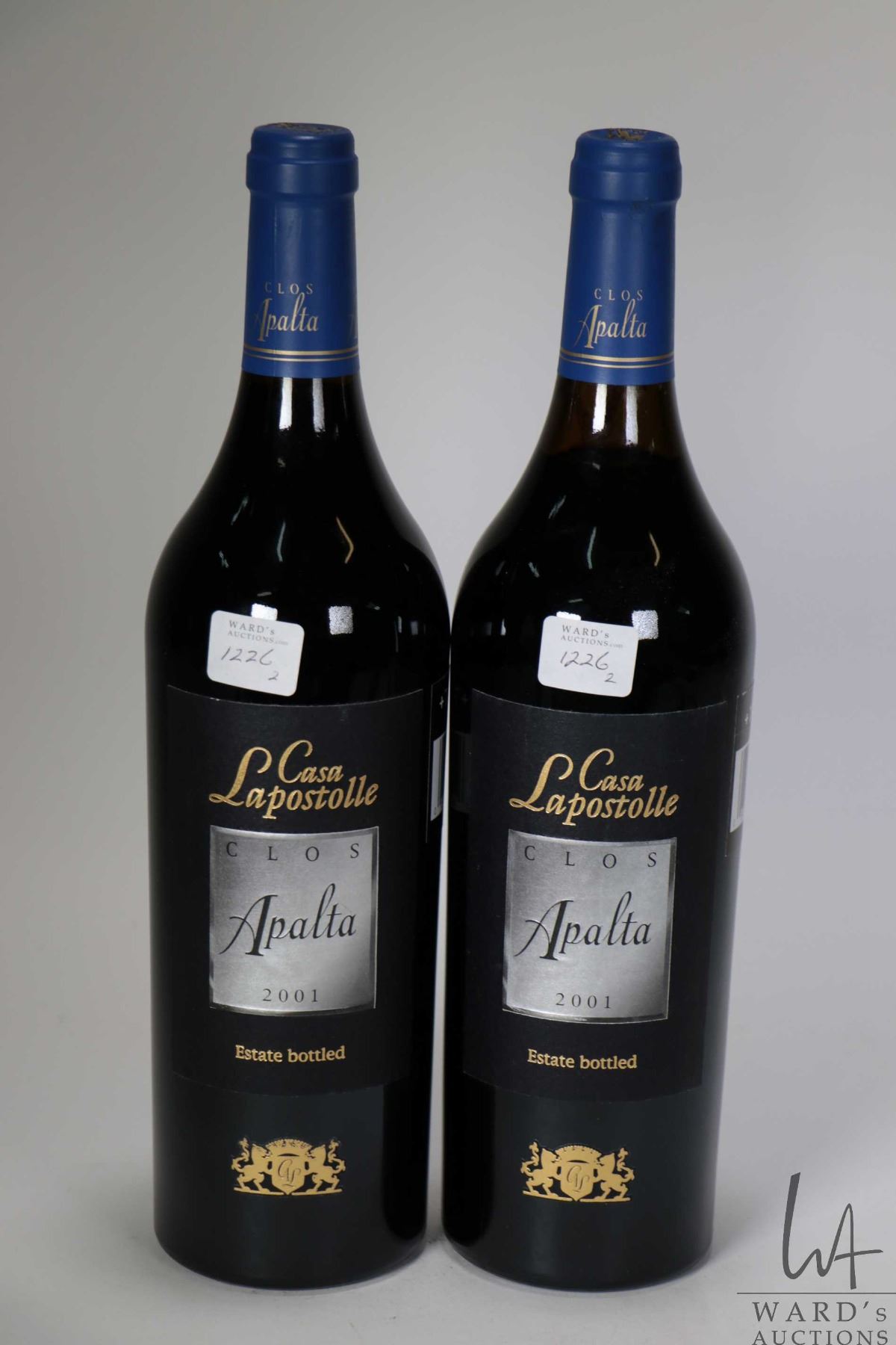Two bottles of Casa Lapostolle Clos Apalta 2001 / Chile / each 75 cl and each 14% ABV LOCAL PICK UP ONLY, NO SHIPPING I.D. REQUIRED