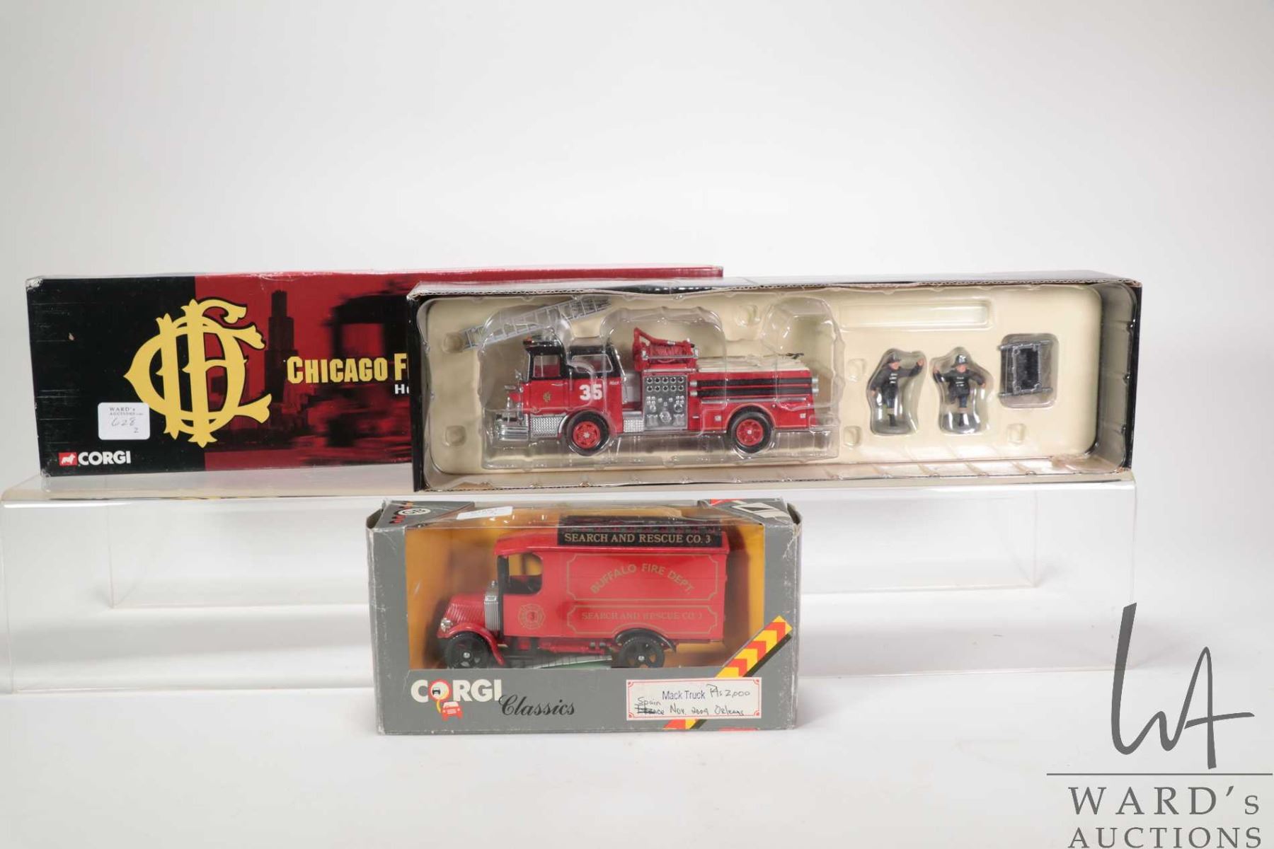 Two boxed Corgi fire department vehicles including "Buffalo Fire Department Search and Rescue Co. 3" and " 1:50th scale 2002 Collector Edition "Chicago Fire Department"