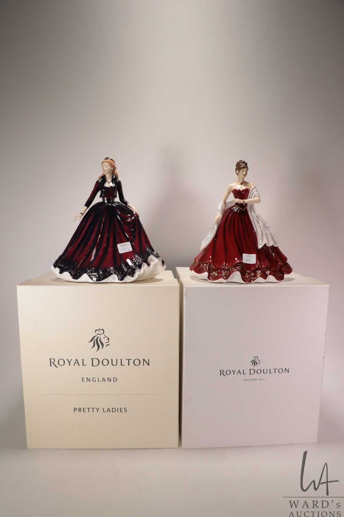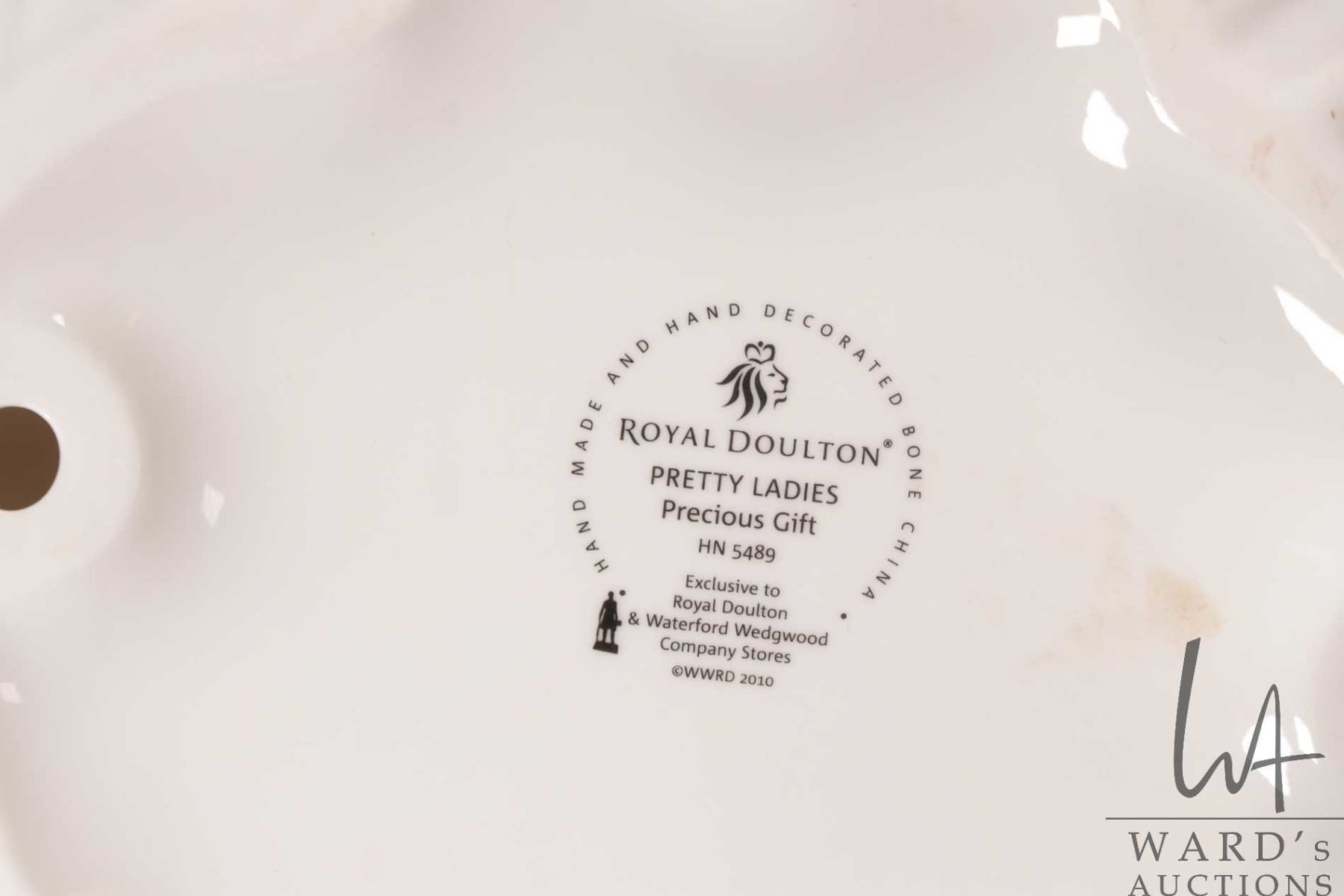 Two boxed Royal Doulton figurines from the Pretty Ladies series including Precious Gift HN5489 and Holiday Greeting HN5494