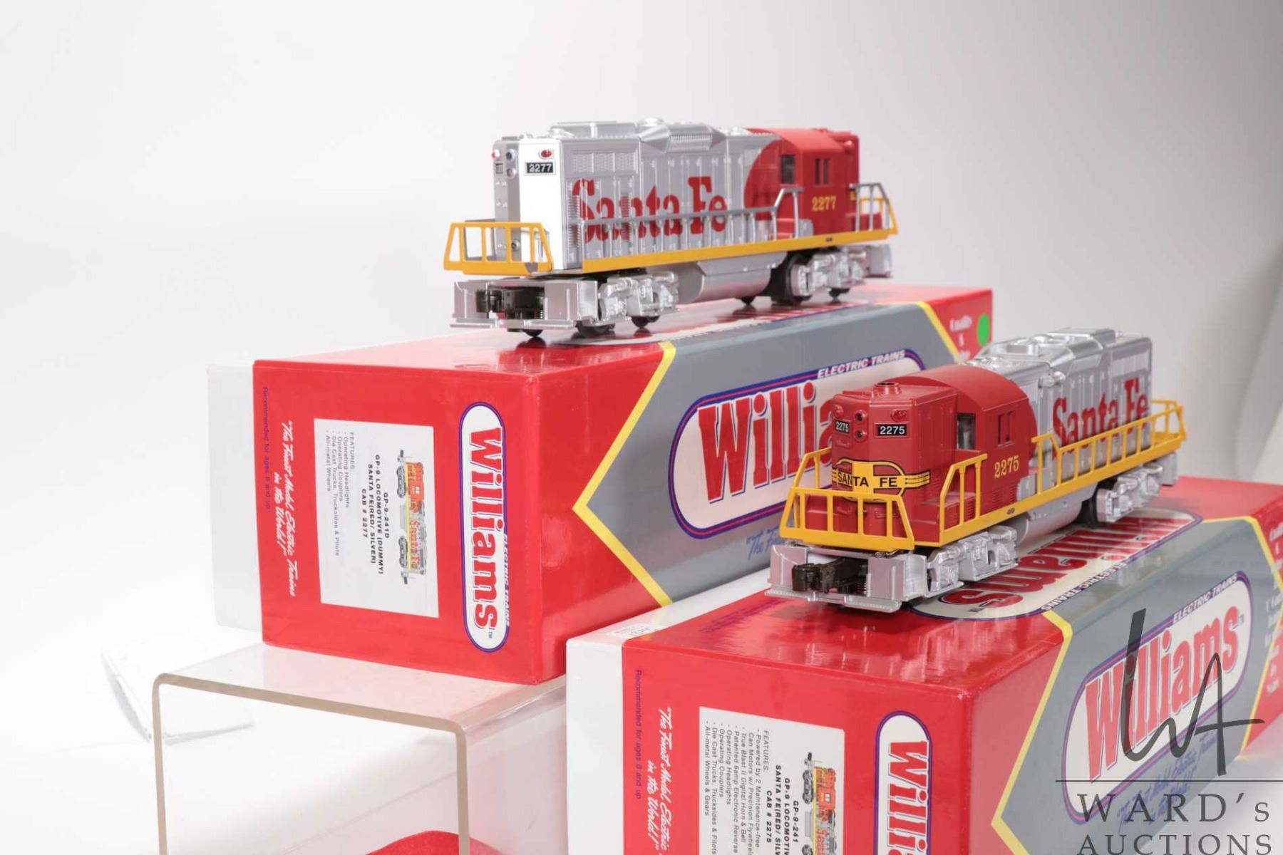 Two boxed Williams O scale Sante Fe diesel locomotives including GP-9-241 no. 2275 power unit and GP