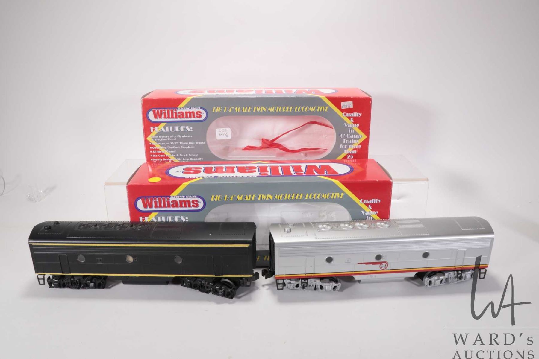 Two boxed Williams O scale trains including Sante Fe F7-120B dummy no. 19 and no. 1203 dummy no. 528, in gently used condition