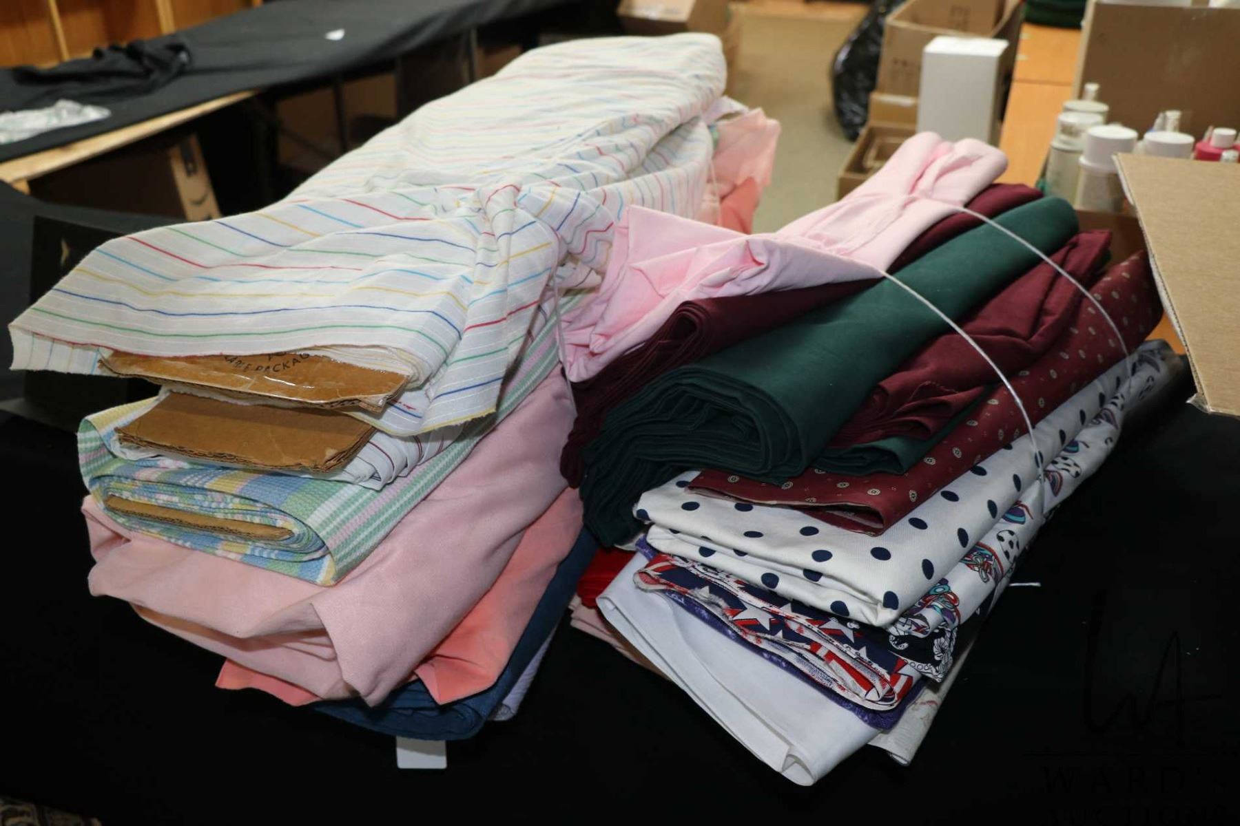 Two bundles of fabric including cotton, nylon, velour, denim, knit etc.