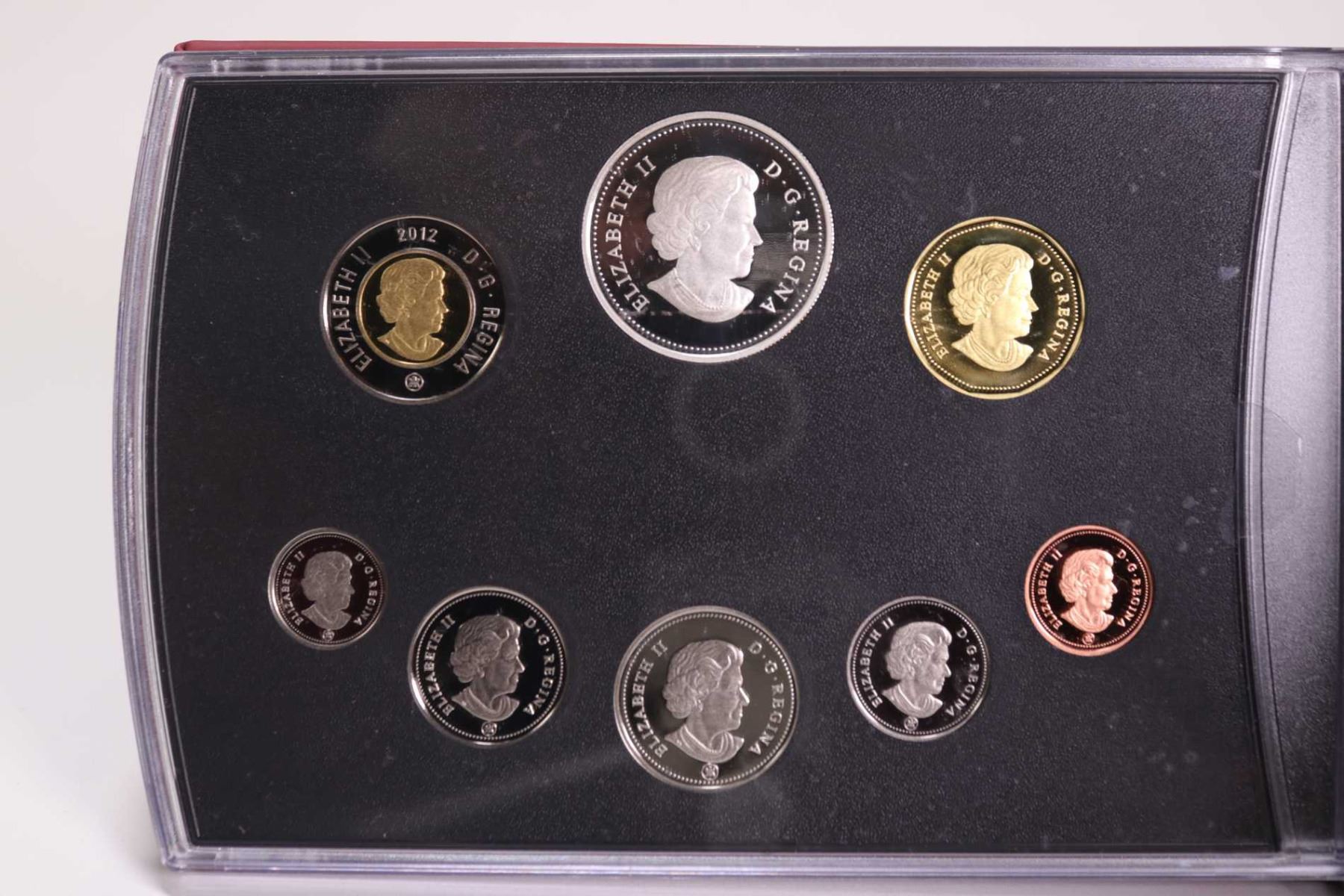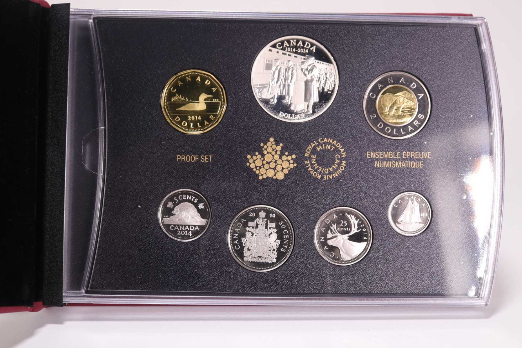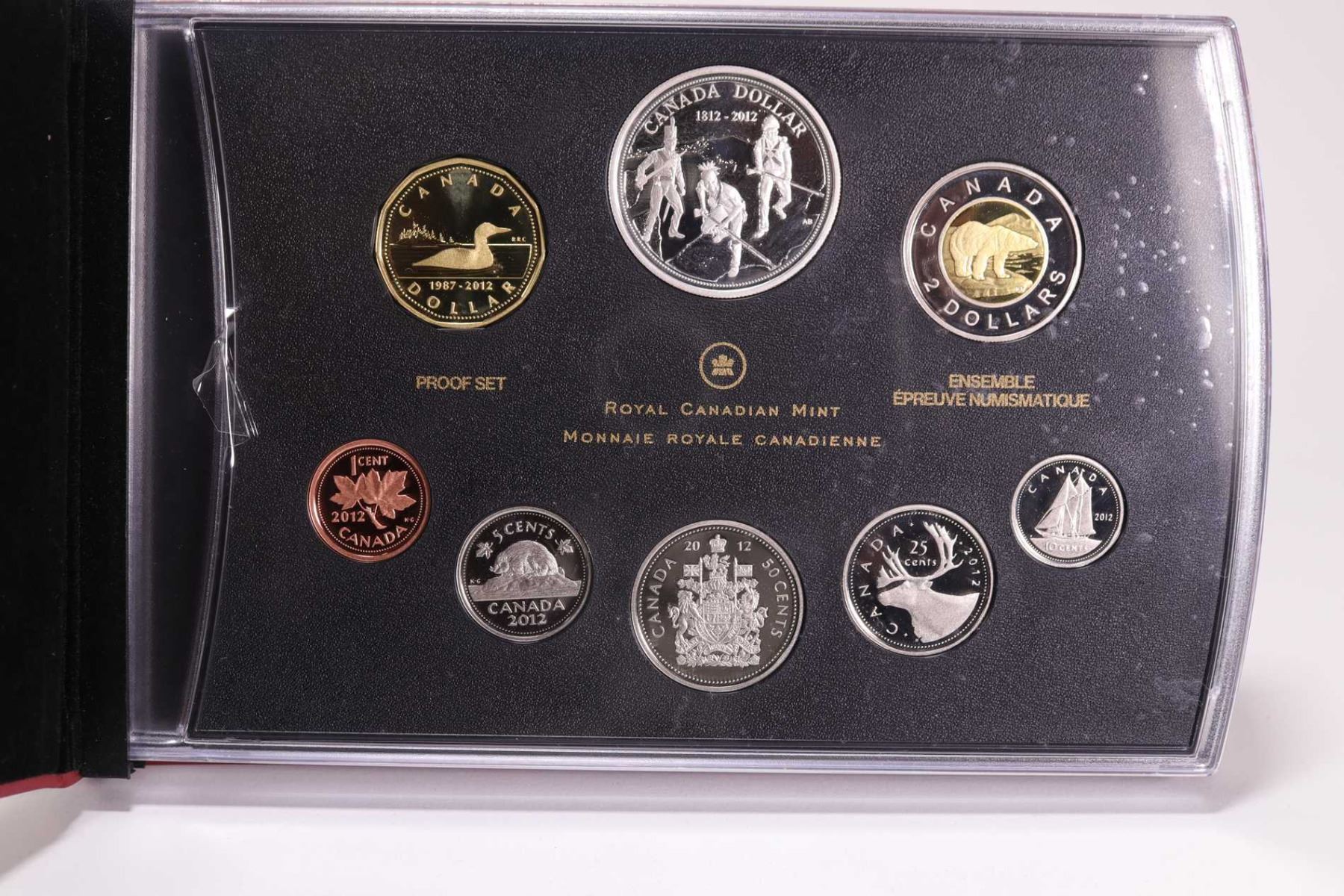 Two cased Royal Canadian Mint collector coin sets including 2012 " War of 1812 Building Unity-The Seeds of a Nation" Silver dollar coin set and 2012 "100th Anniversary of the Declaration of the First World War" Silver dollar proof set, originally retailed for $224.95 CAD
