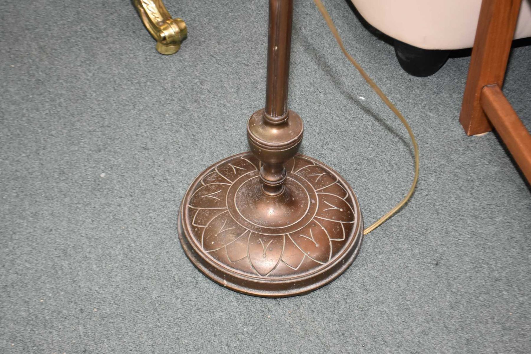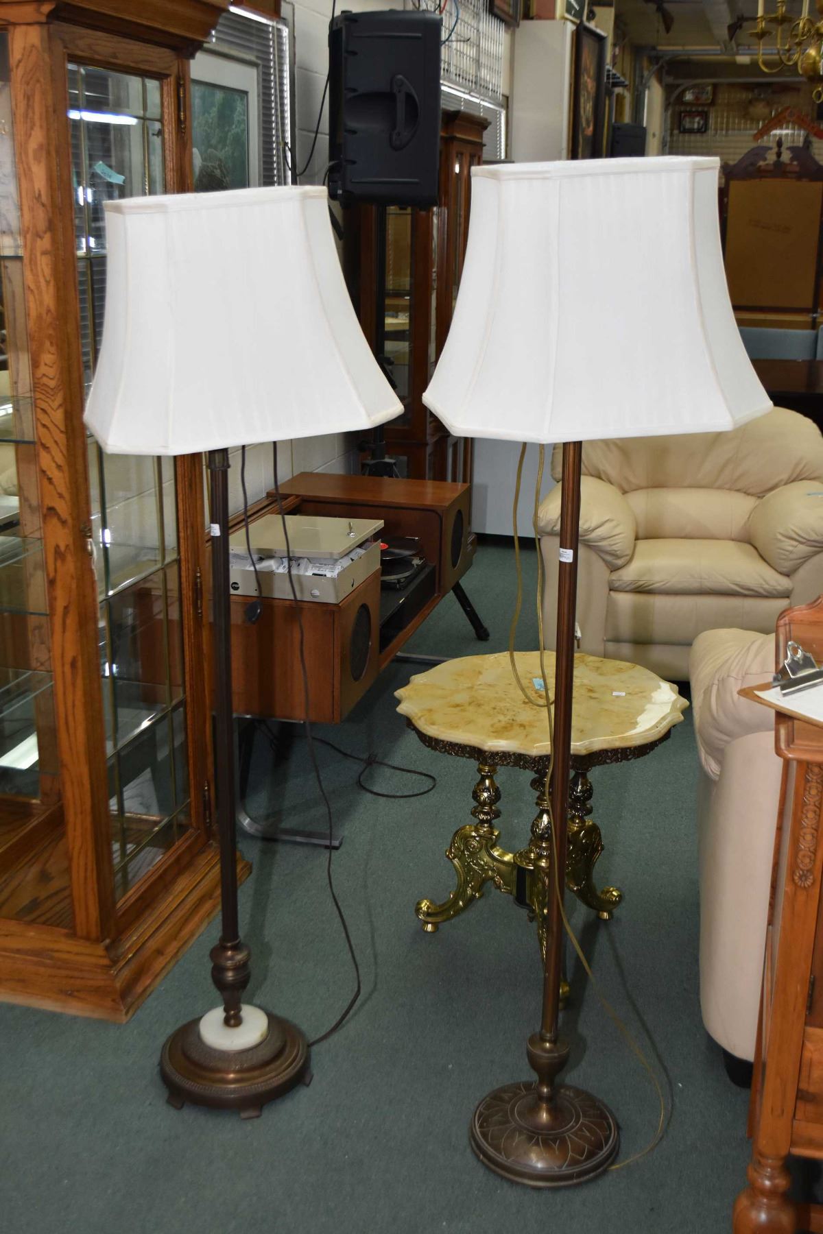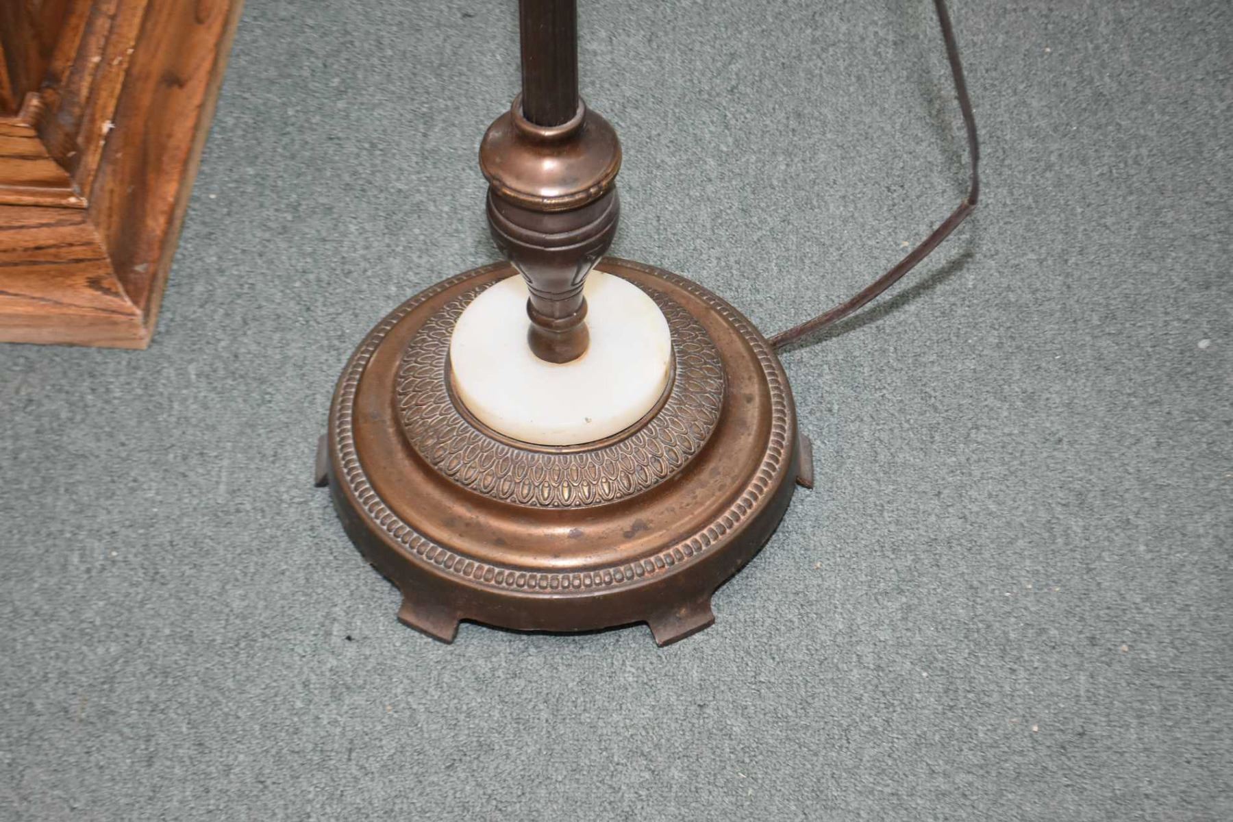 Two complimenting vintage cast tri-lights with shades