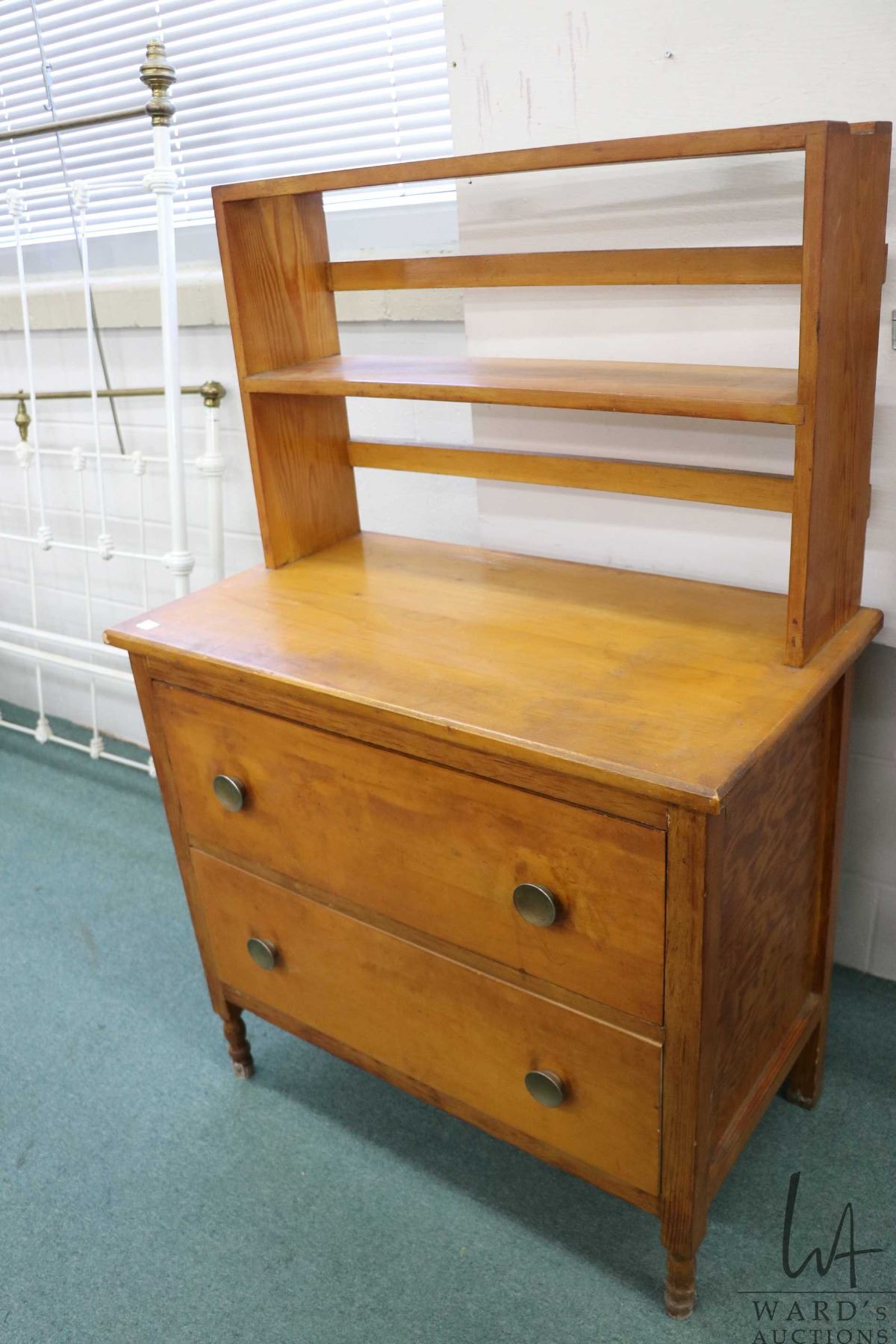 Two drawer Canadiana dresser with attached bookcase, 48" H X 31" W X 17" D