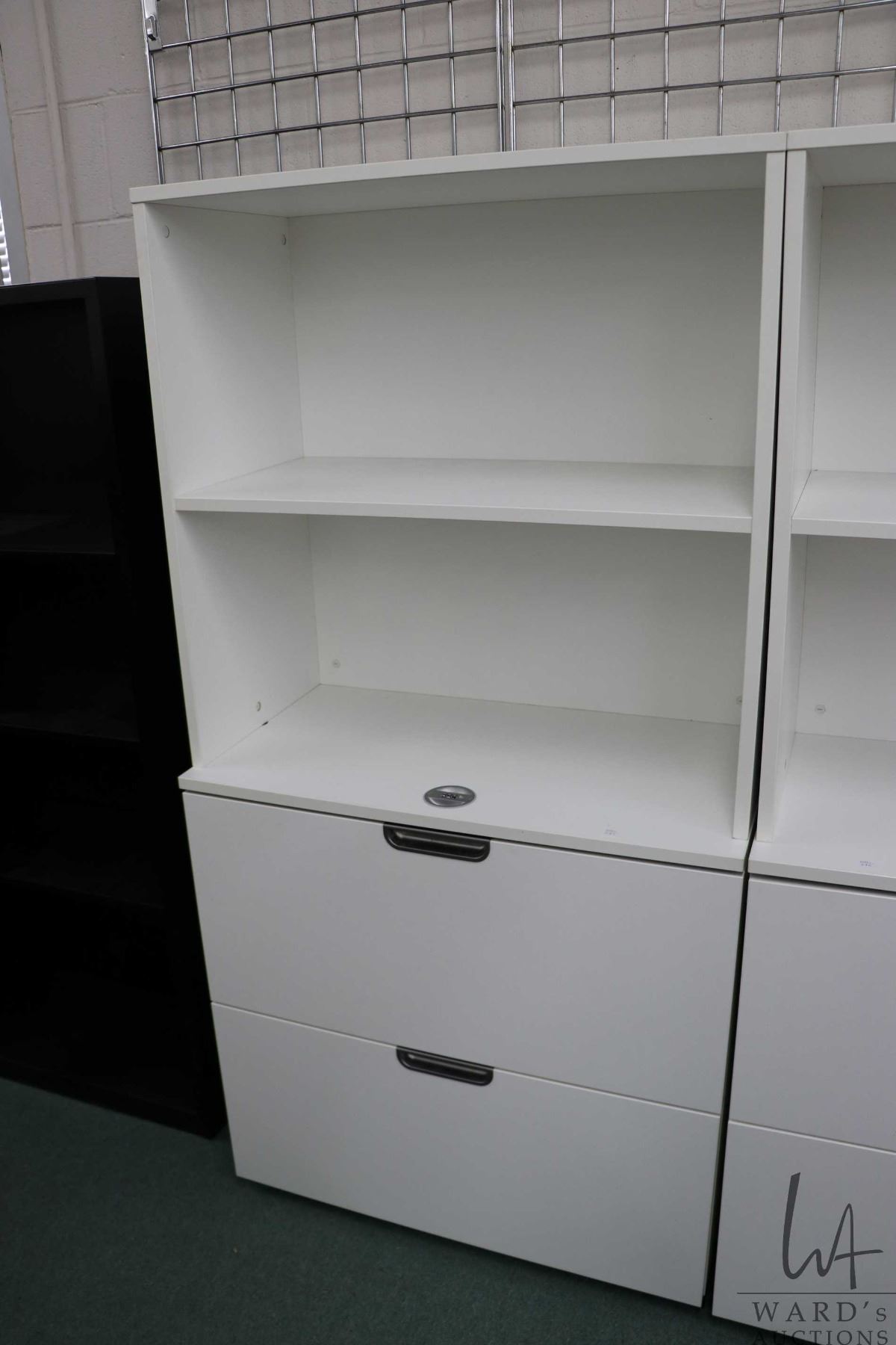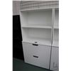 Two drawer lateral filing cabinet with open hutch topper, note: drawers are lock and