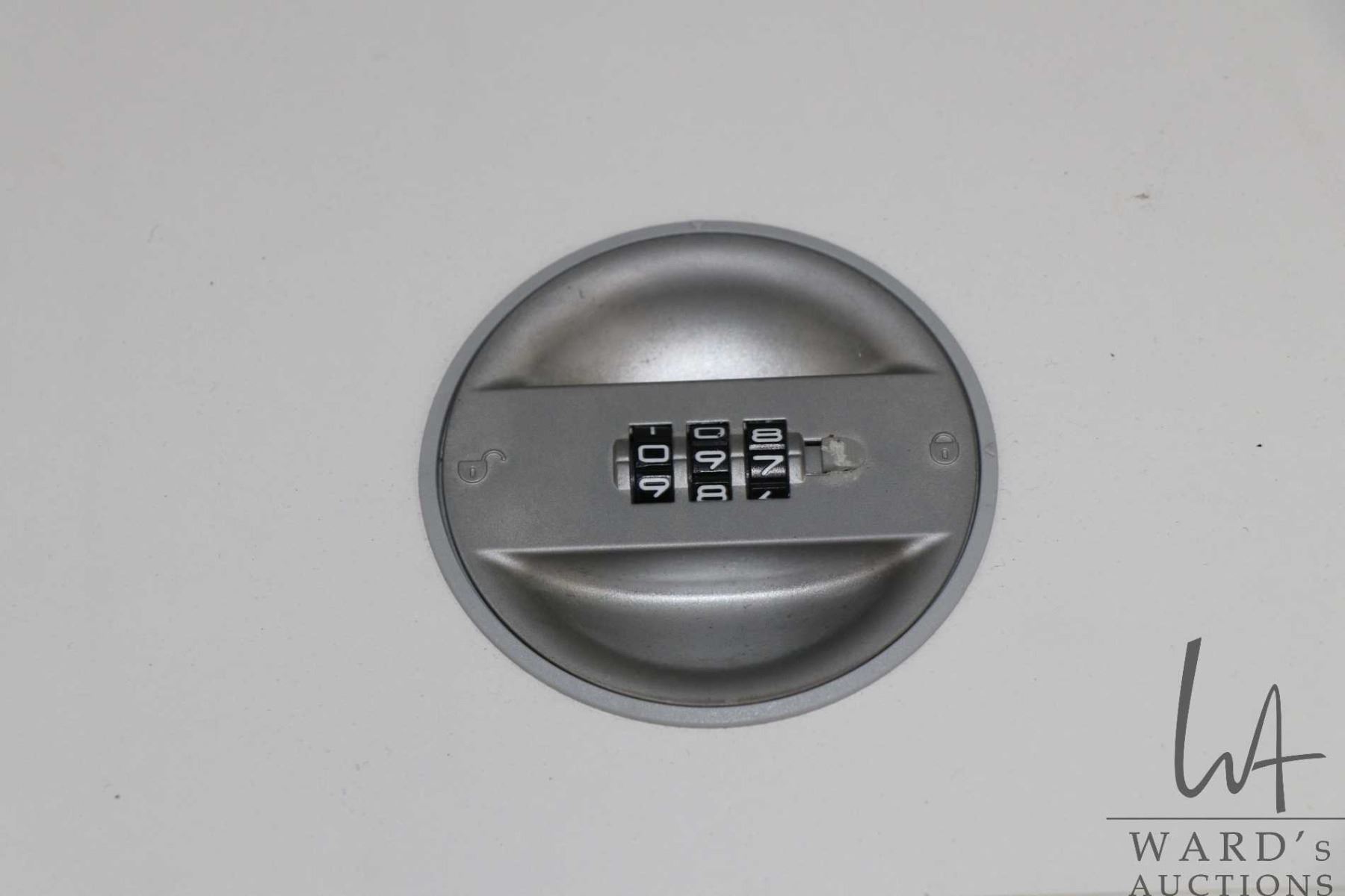 Two drawer lateral filing cabinet with open hutch topper, note: drawers are lock and programmed to factory password, 63" H X 32" W X 18" D