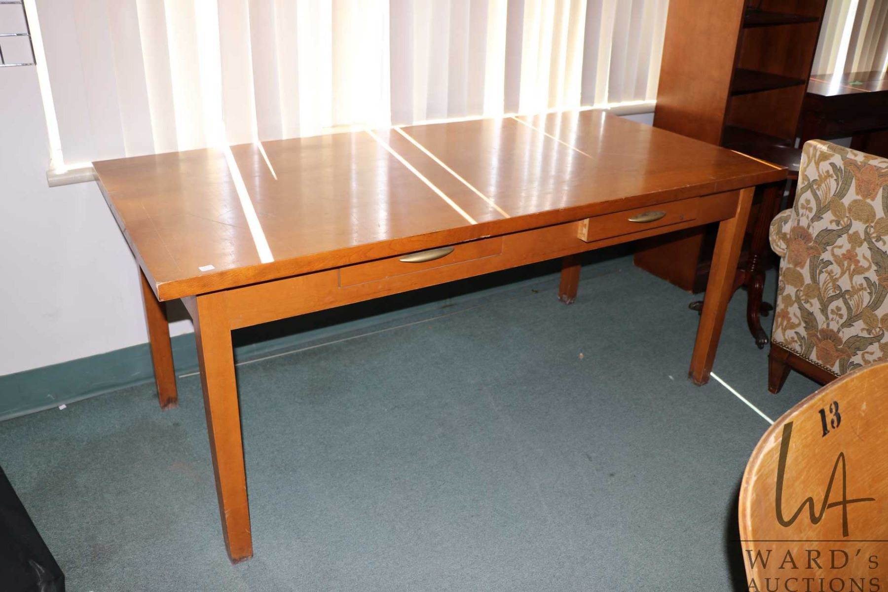 Two drawer maple office/ library table 31" H X 73" X 34"