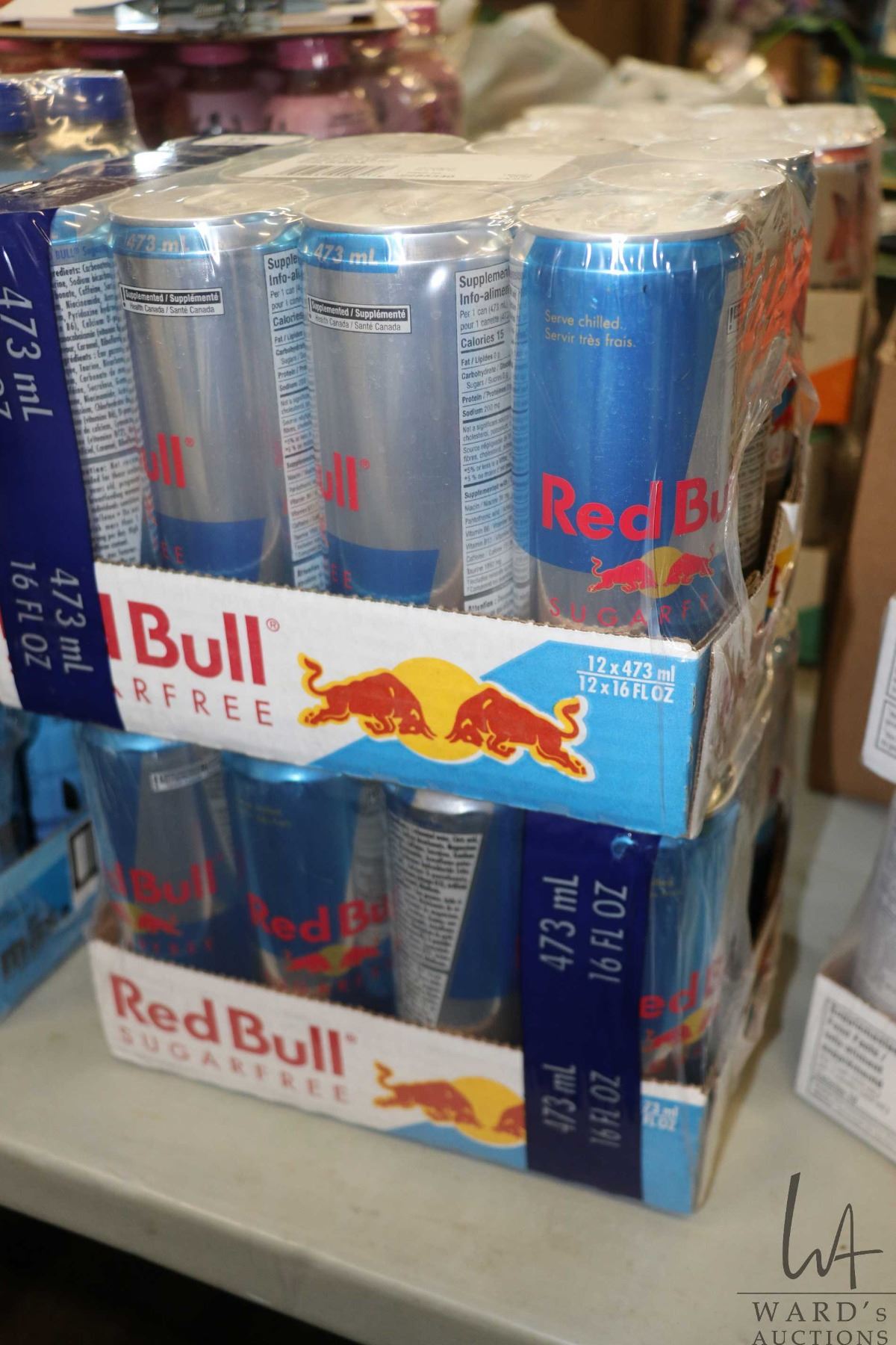 Two flats w/ 12 473ml cans of Red Bull Sugar Free energy drink