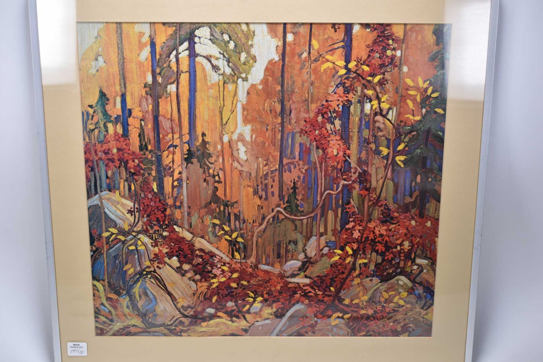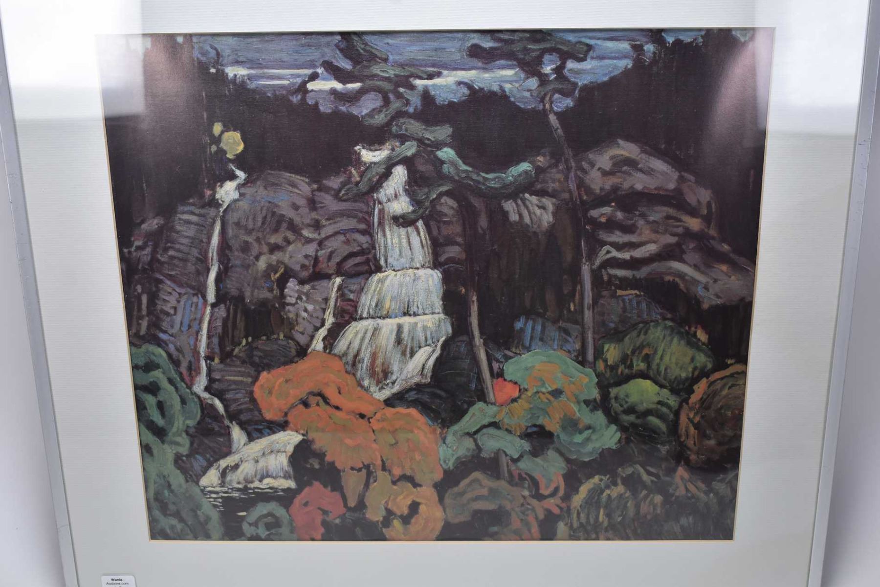 Two framed "Group of Seven" prints including "Autumn's Garland" by Tom Thomson and "Algoma Waterfall" by G.H. MacDonald