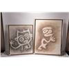 Two framed Petroglyph rubbings on fabric including "Spirit of the Rock" "79" , 21" X 17" and stylize