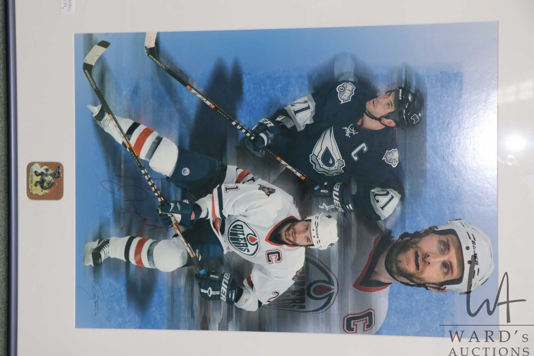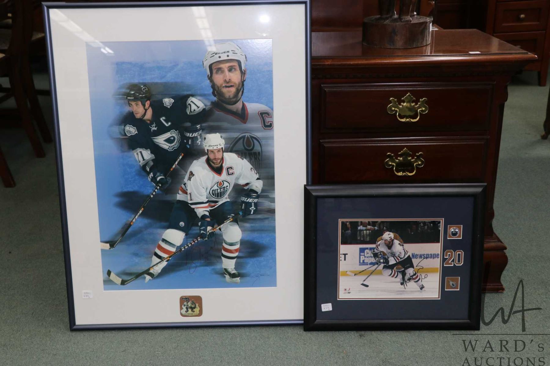 Two framed and hand signed Edmonton Oilers collectibles including Jason Smith, 32" X 25" and No. 20