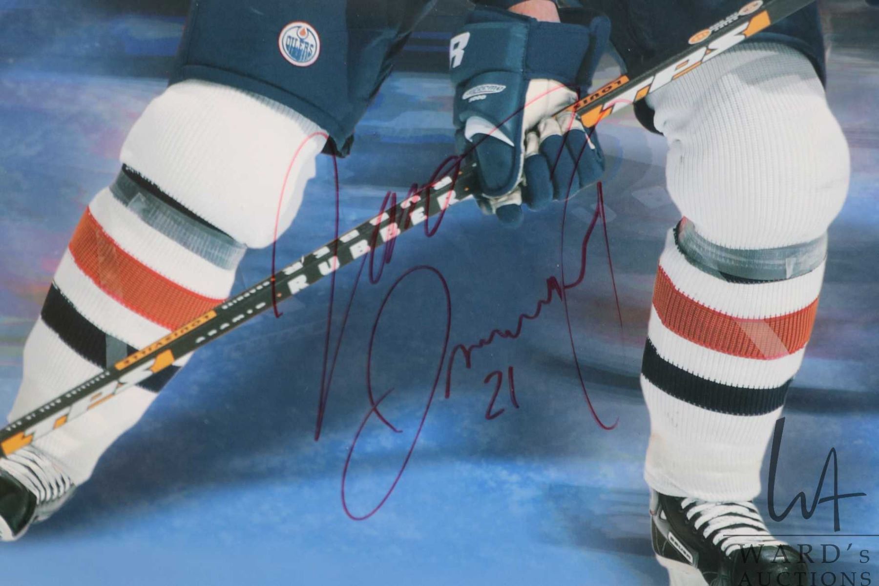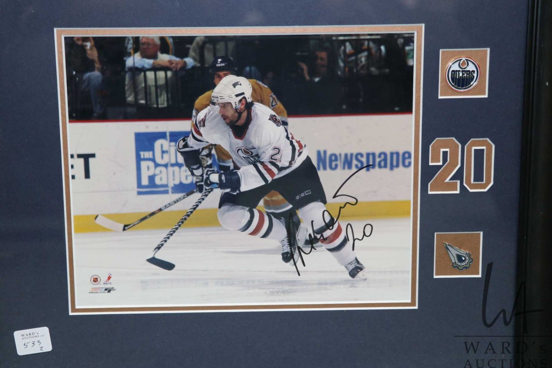 Two framed and hand signed Edmonton Oilers collectibles including Jason Smith, 32" X 25" and No. 20 Radek Dvorak. Note: Not available for shipping. Local pickup only