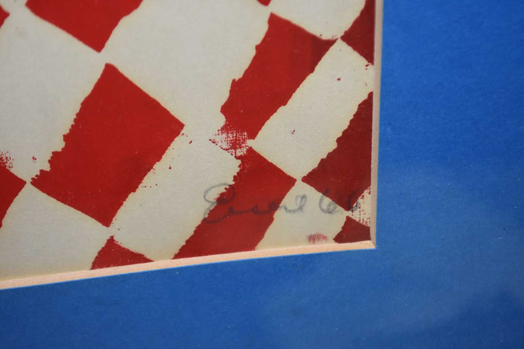 Two framed block prints including three colour kitchen graphic and a three colour desk graphic, both pencil signed by artist Eisert and both 24" X 19"