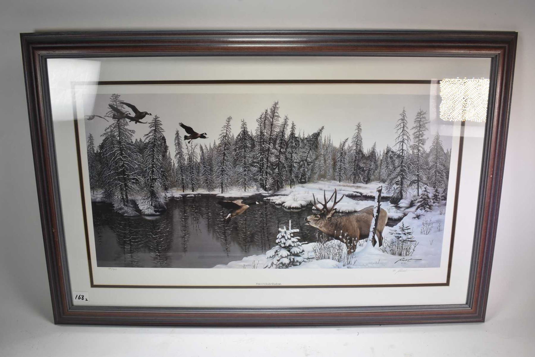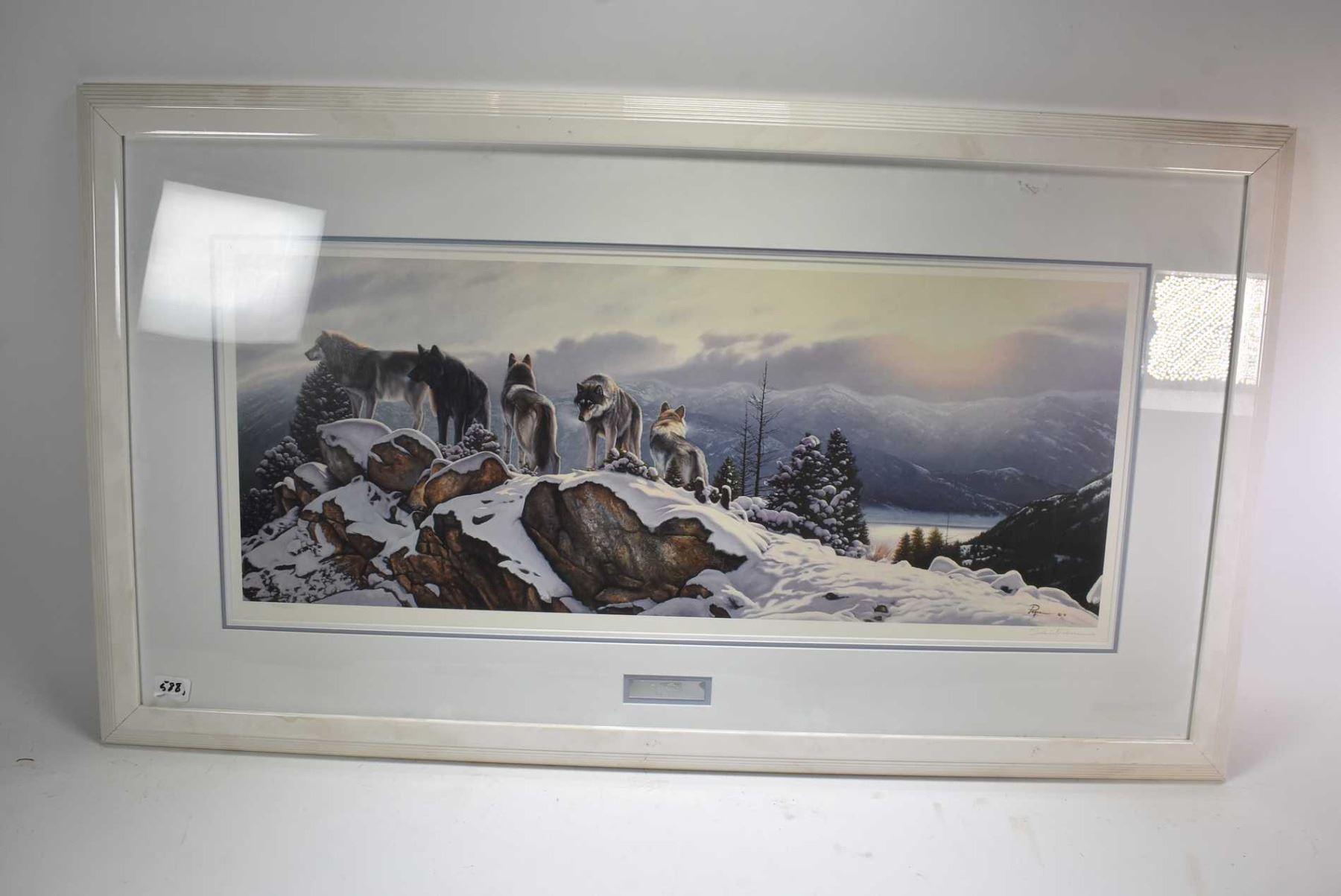 Two framed limited edition prints including "Five O'Clock Shadow" by D. Rust 85/950 and "They Watch" by Dan Pierce 866/1250, both pencil signed by artists