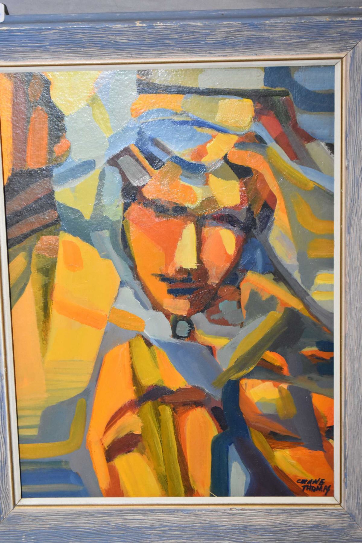 Two framed oil on board paintings including "Yellowface" titled on verso, 16" X 20" and an untitled 16" X 20 both by artist Crane Thomas