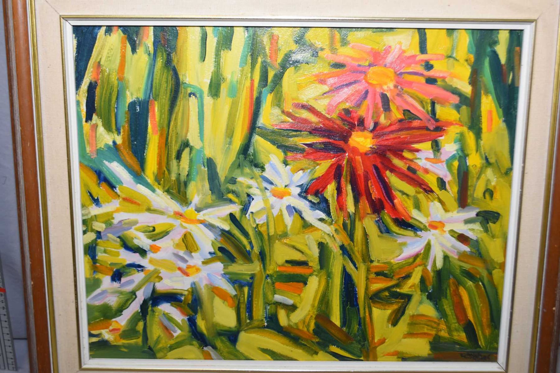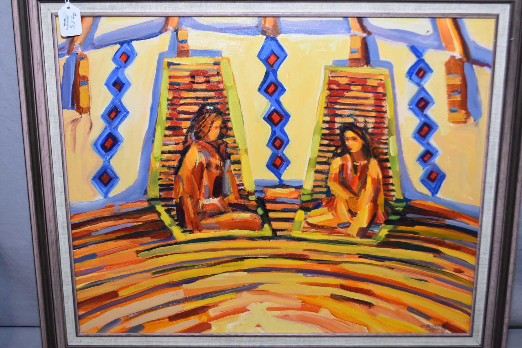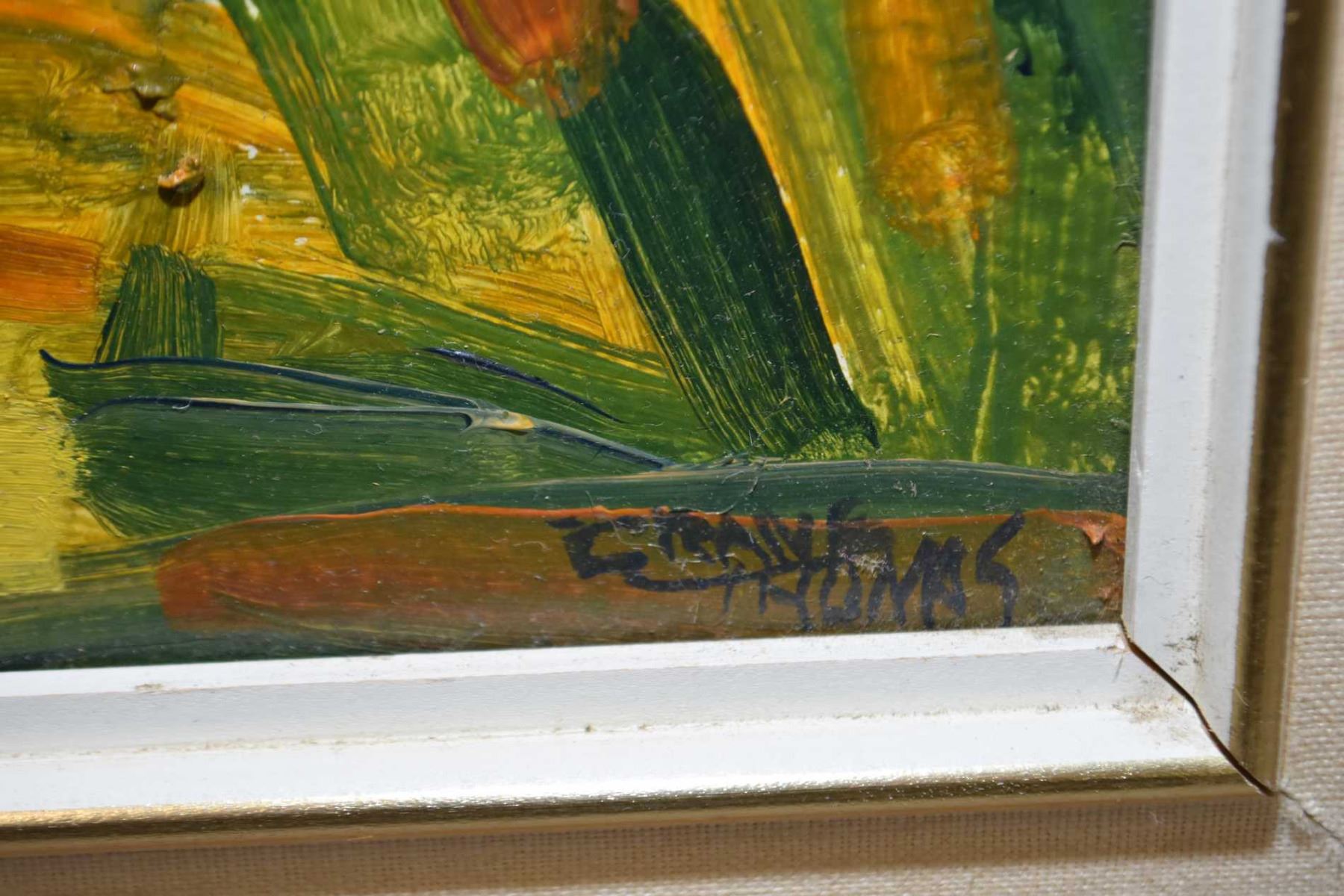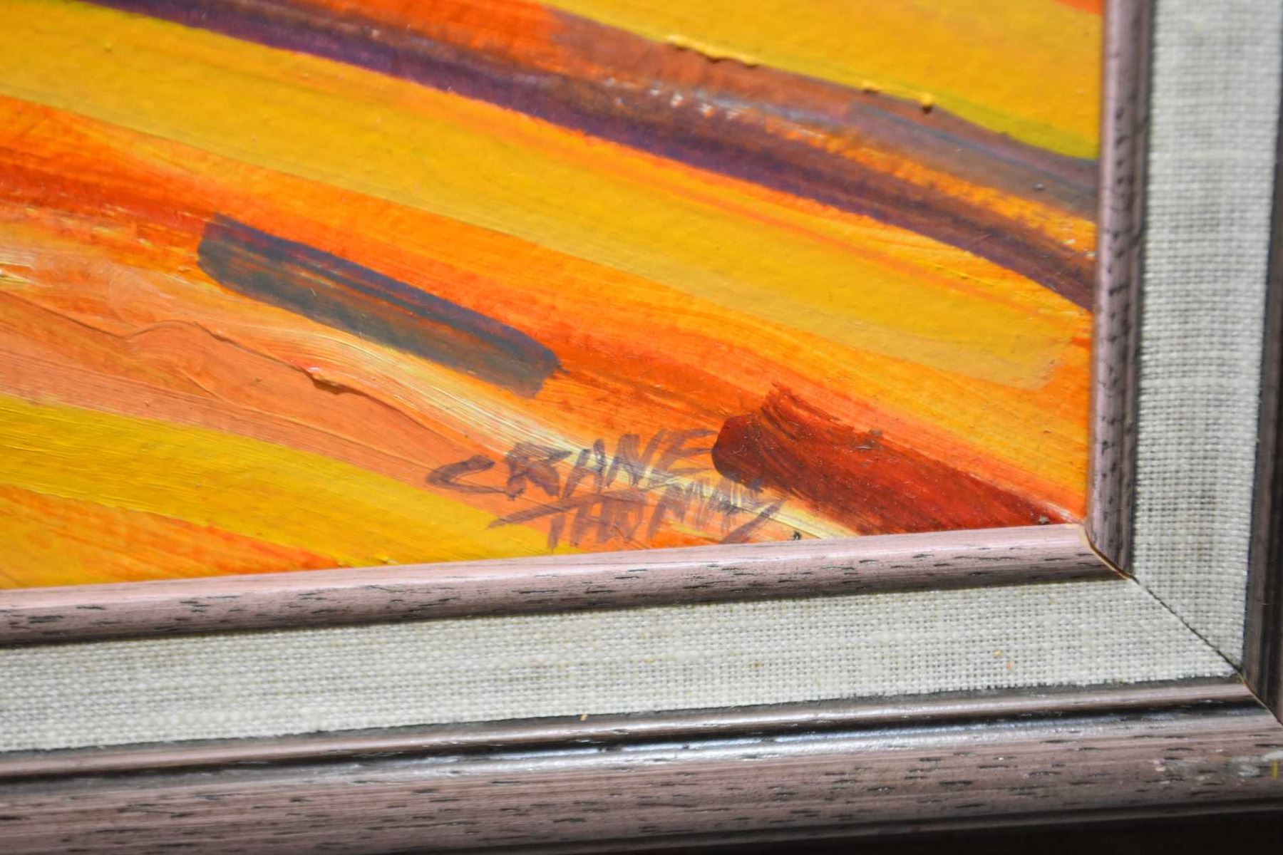 Two framed oil on board paintings including titled "Daisies", 16" X 20" and two figures in a tee pee 16" x 20" both by artist Crane Thomas