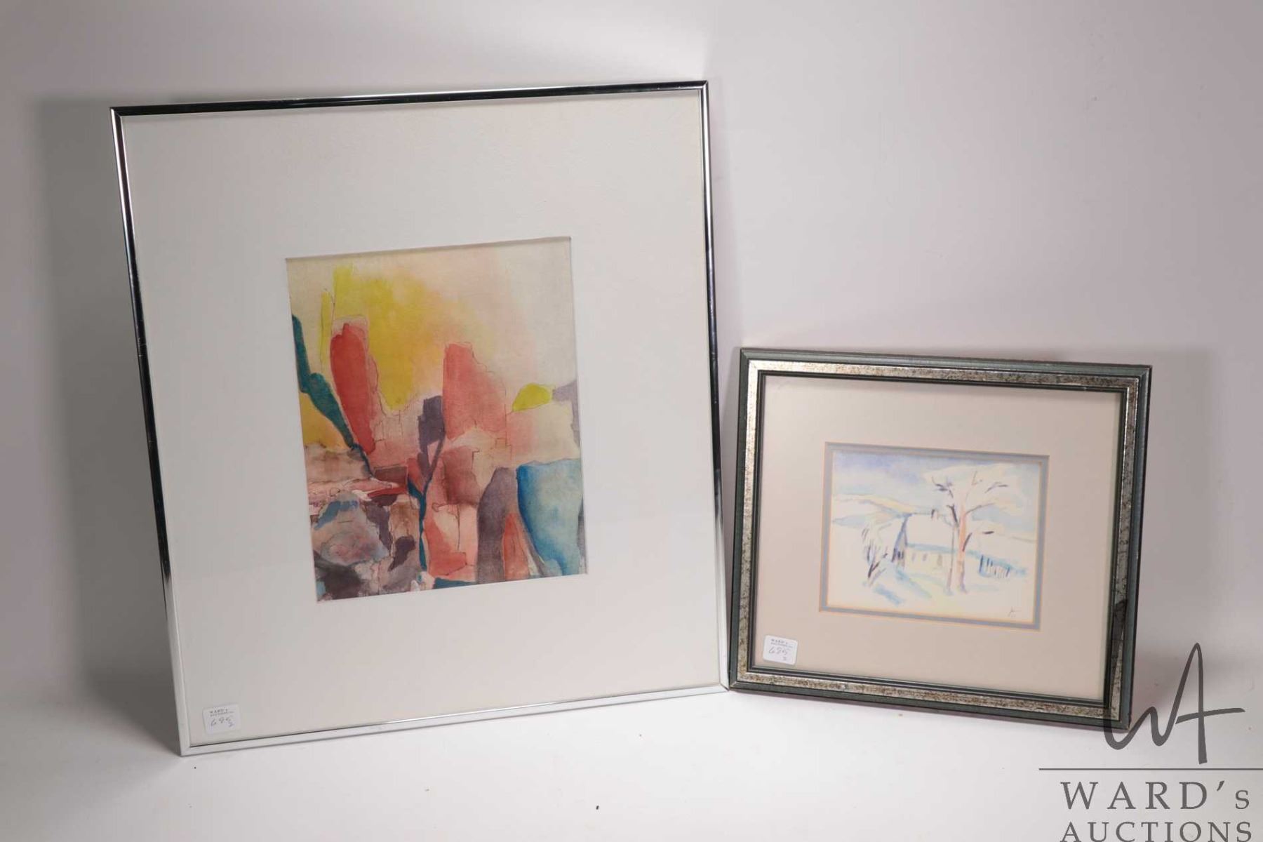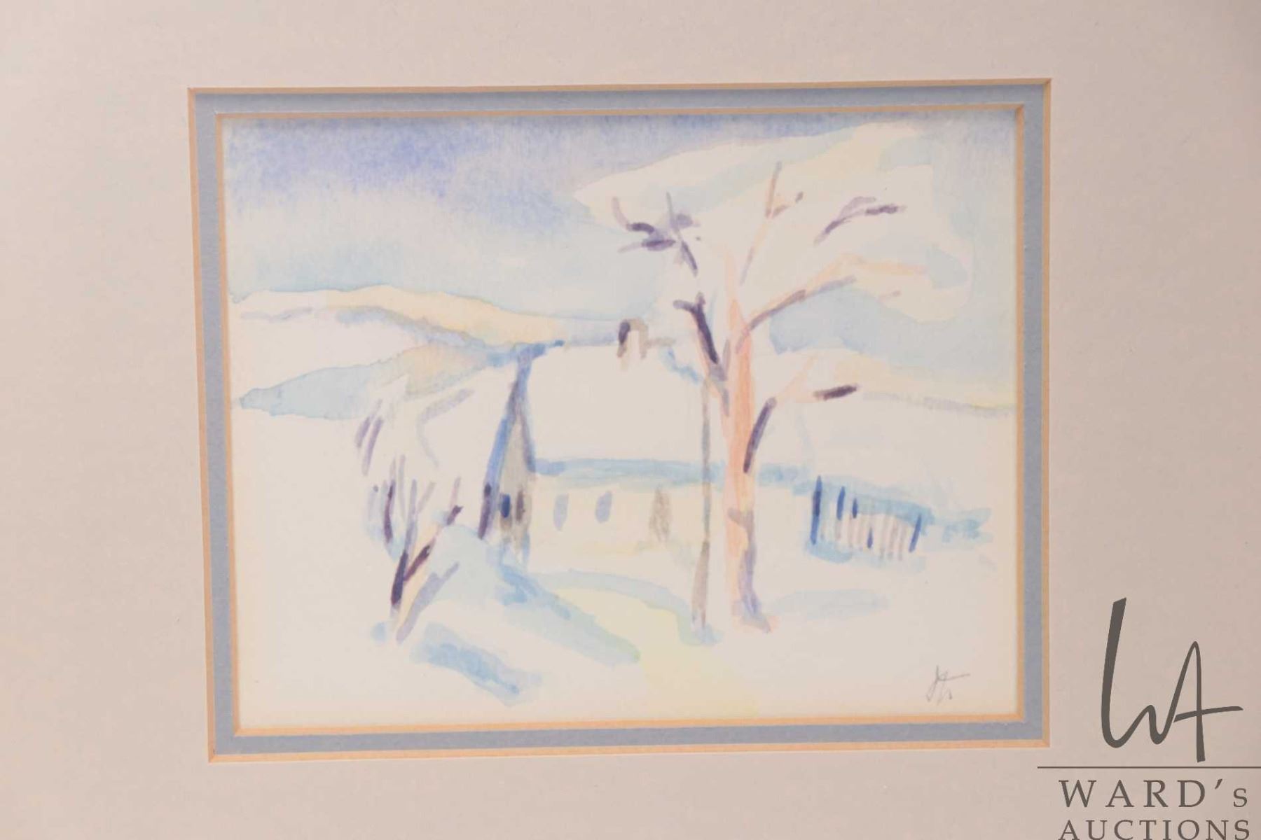 Two framed original watercolour paintings including marked on verso "Klamath Inlet" by Ruth Gewalt, 18" X 16 and a winter scene, monogrammed by artist 5" X 6"