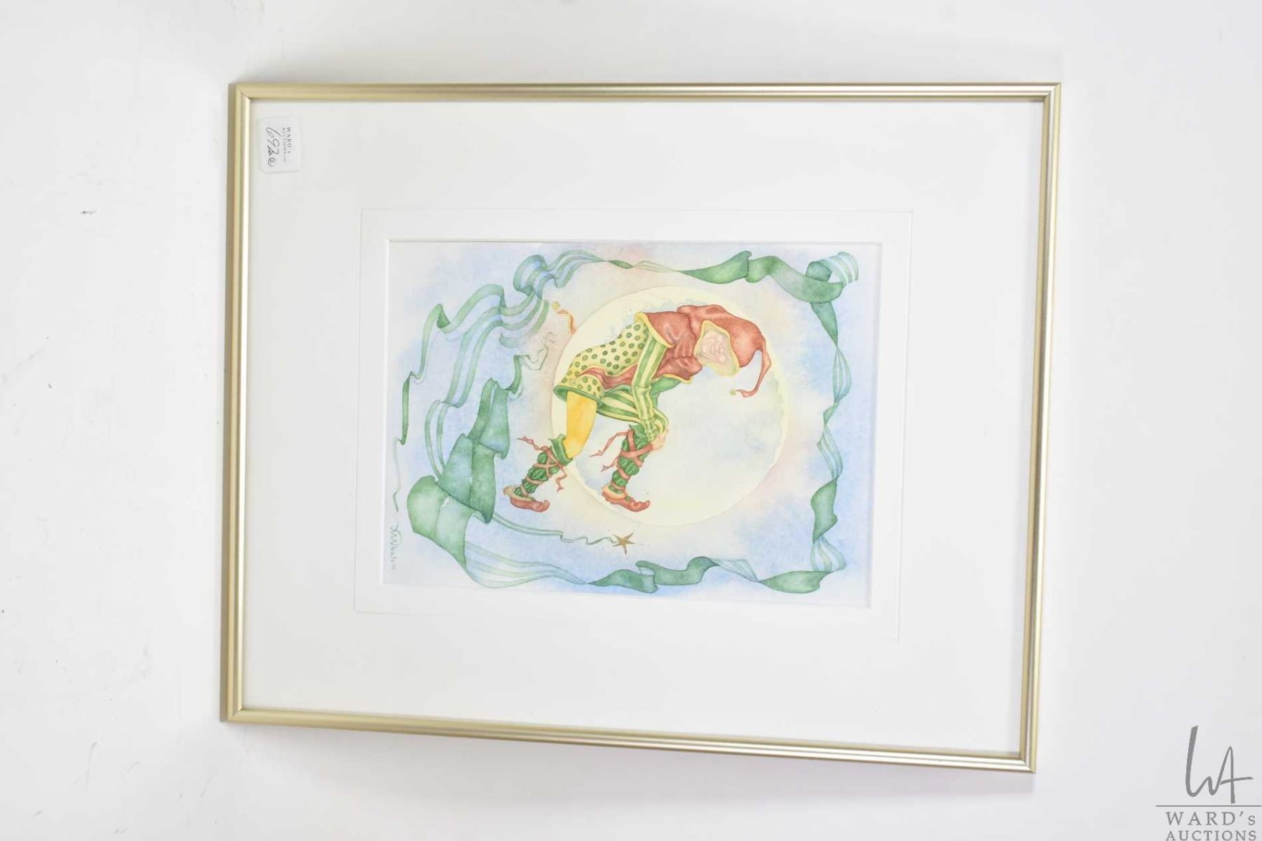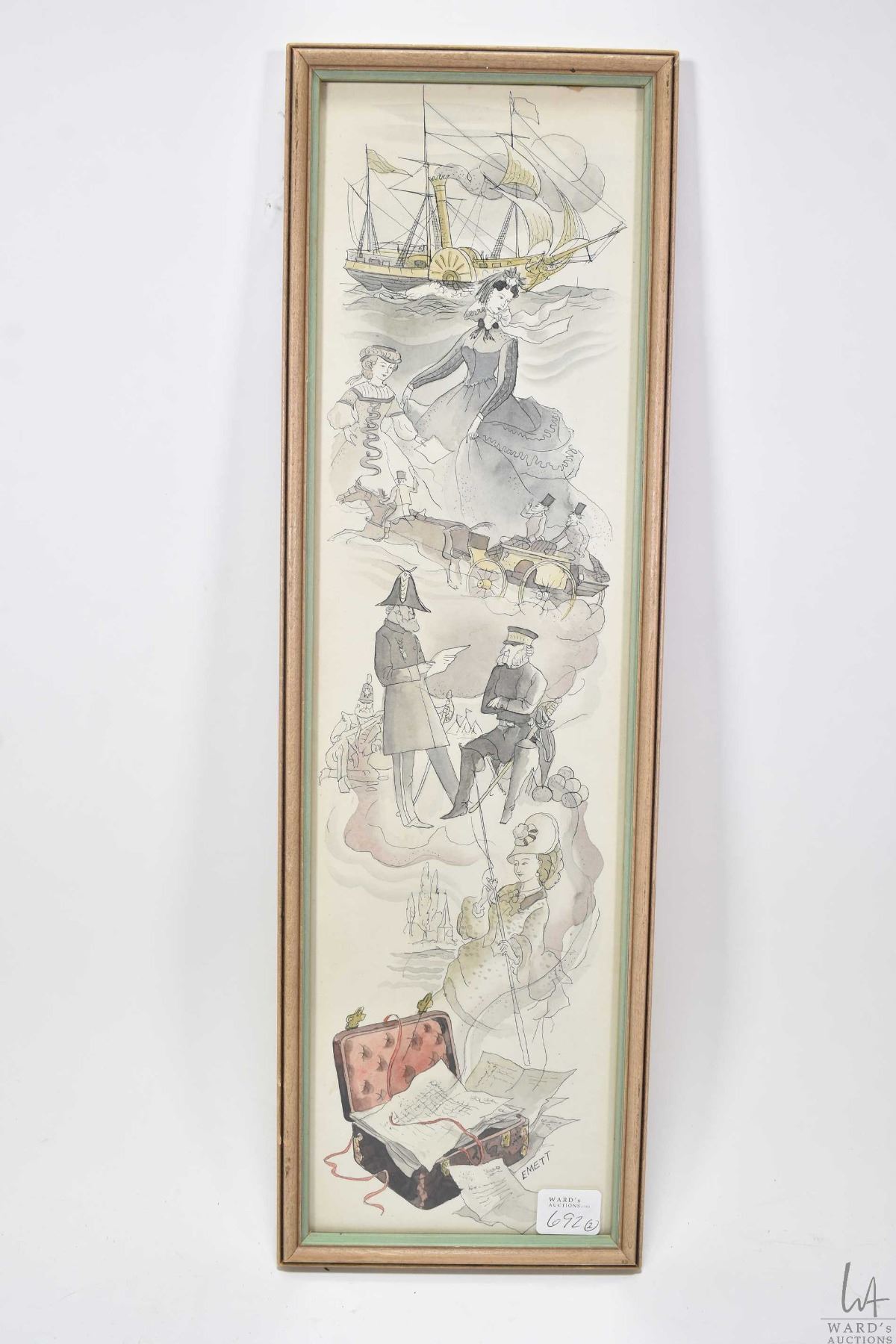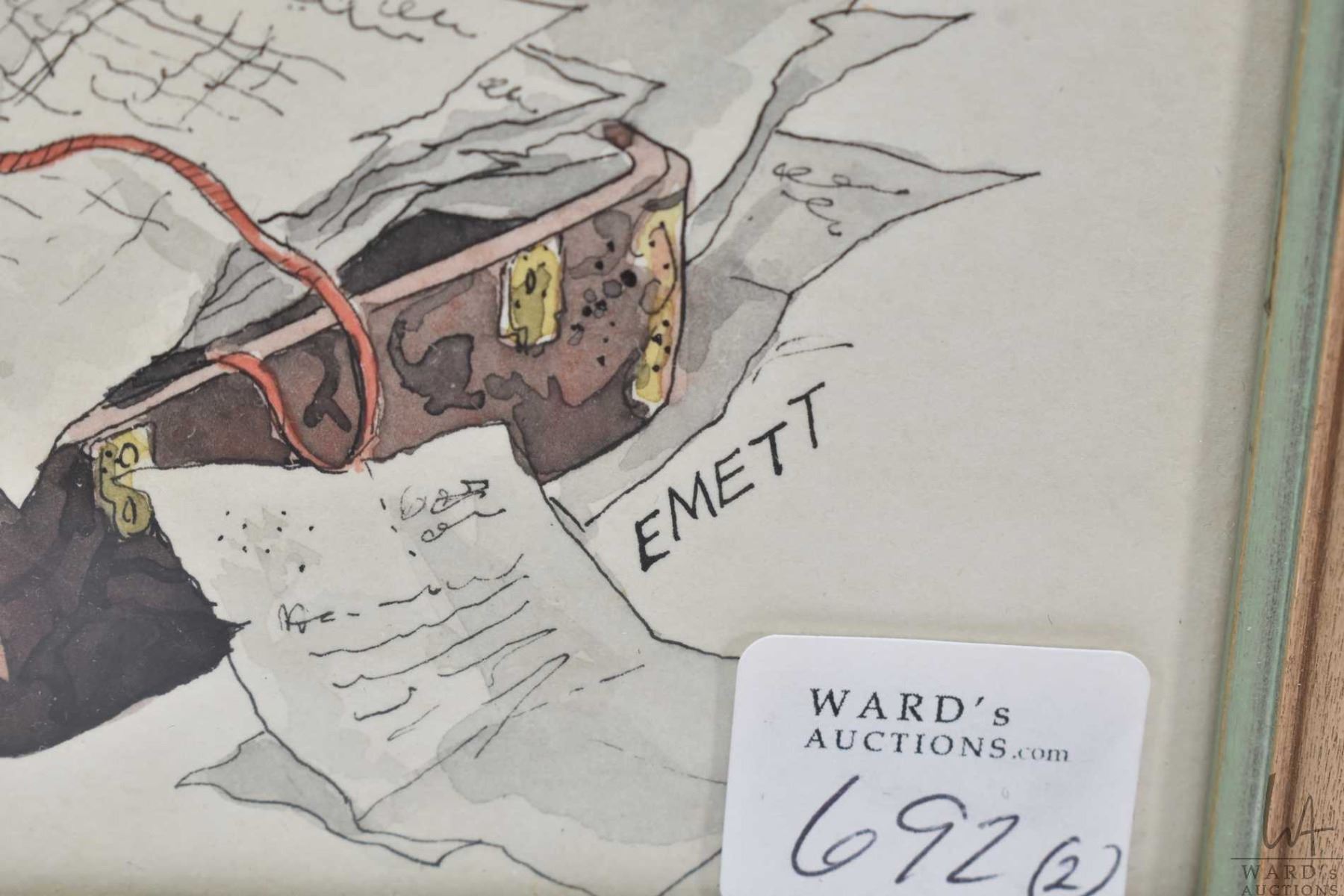 Two framed original watercolours including "Fooled" by Mary Whale 9" X 7" and an untitled nautical themed signed Emett 18" X 5"