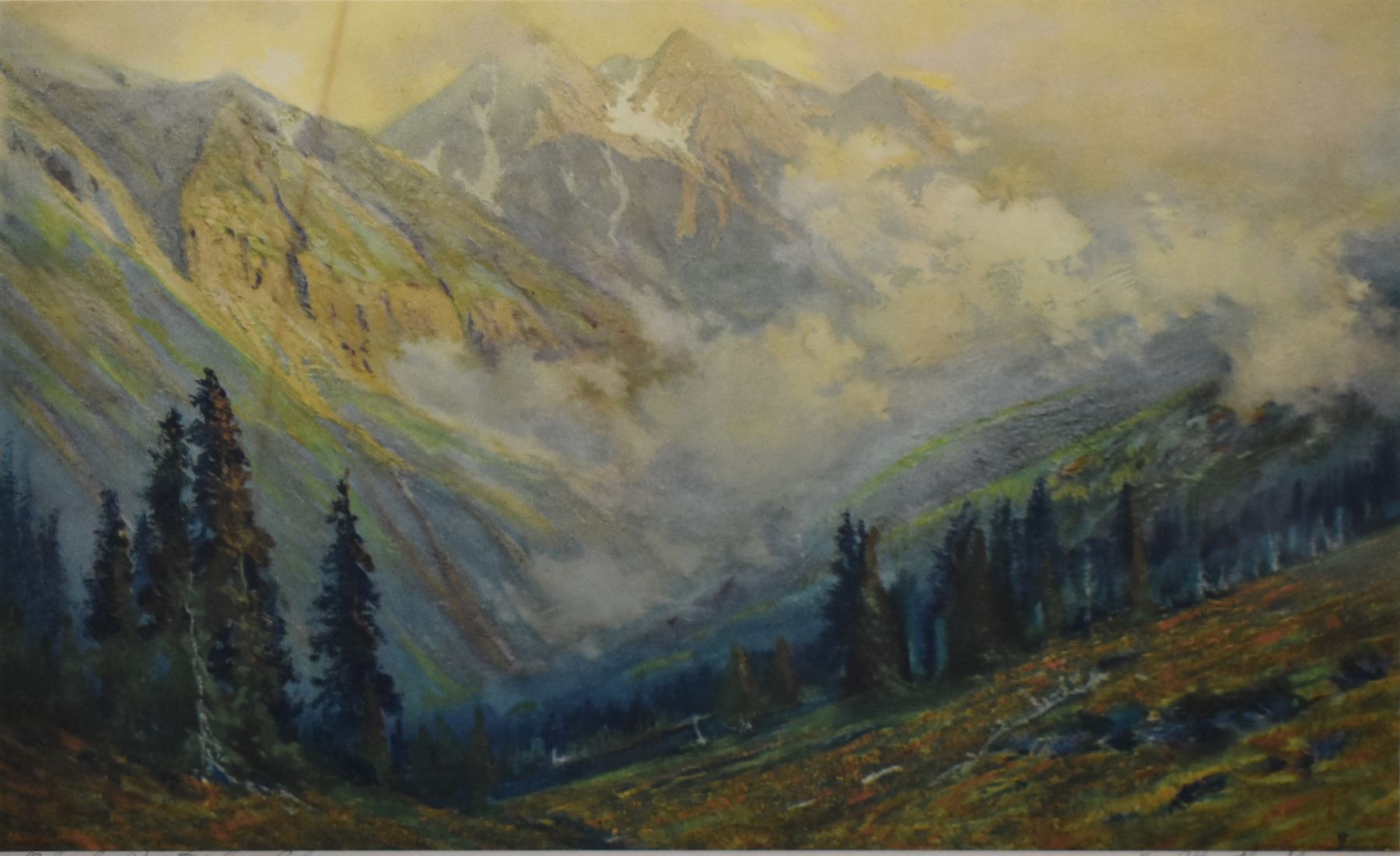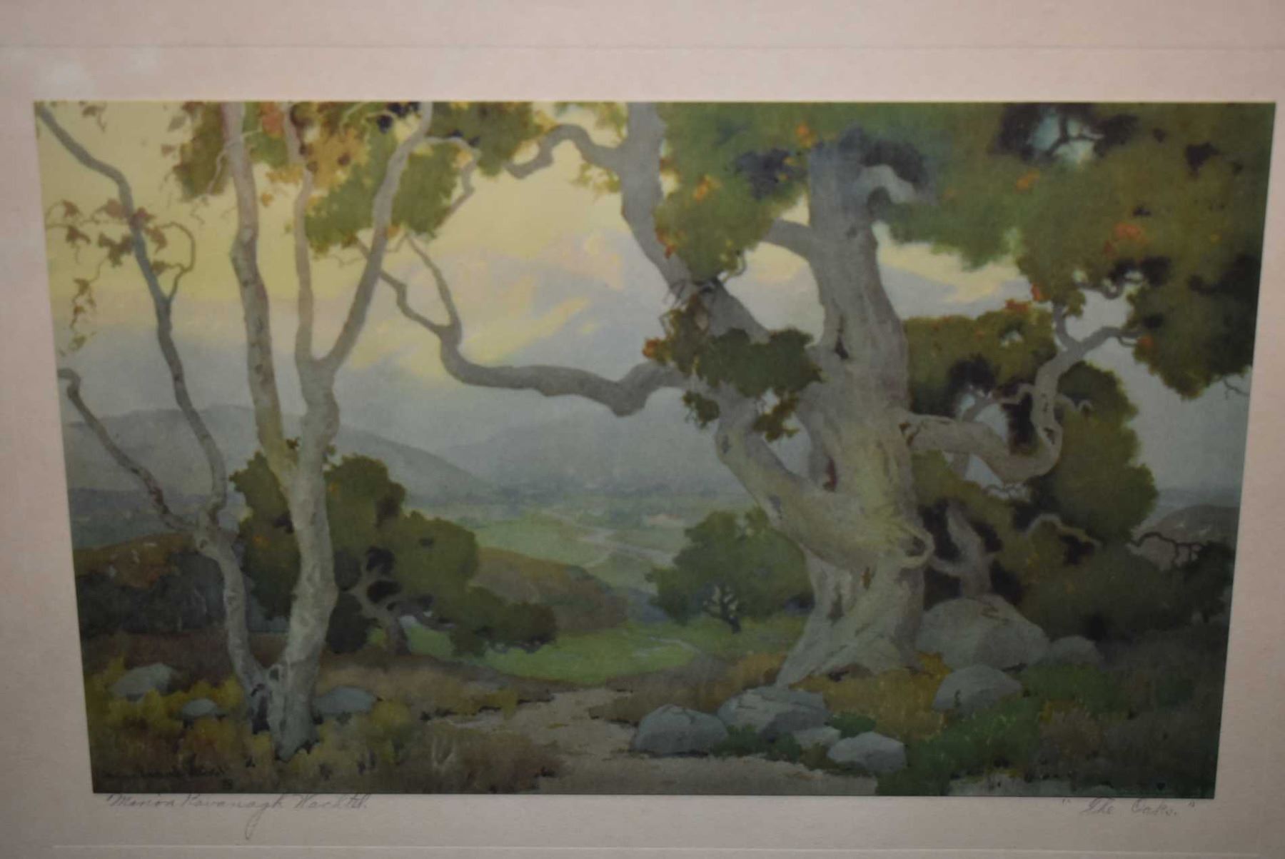Two framed prints including "After the Storm" by Charles Partridge Adams and "The Oaks" by Marion Kavanagh Wachtel