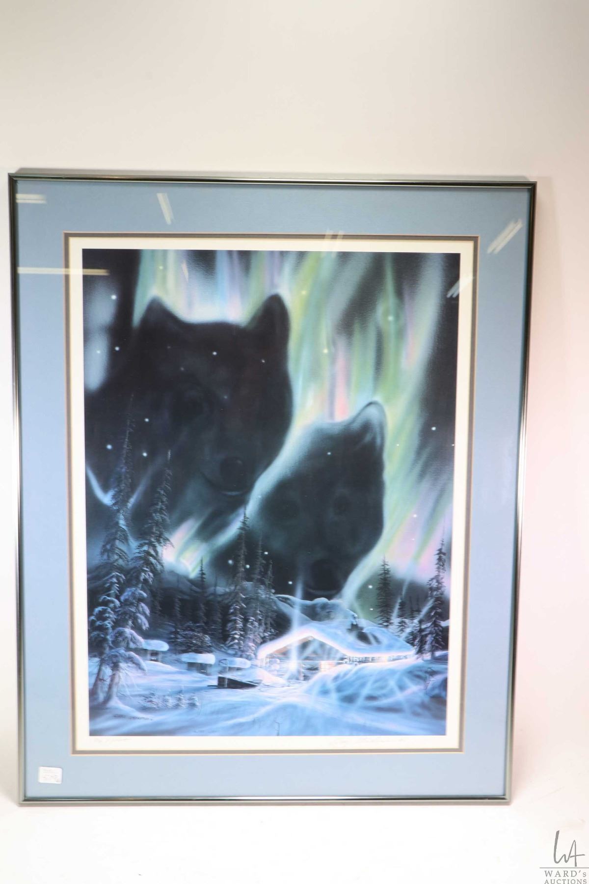 Two framed prints including "Working Together" by Don Cardinal and limited edition "Line Camp" pencil signed by artist Clay Stedman 96/1000. Note: Not available for shipping. Local pickup only