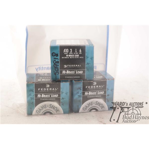 Two full 25 count boxes Federal .410 GA 3" #6, Two full 25 count boxes Federal .410 GA 3" #6, plus an 18 count box