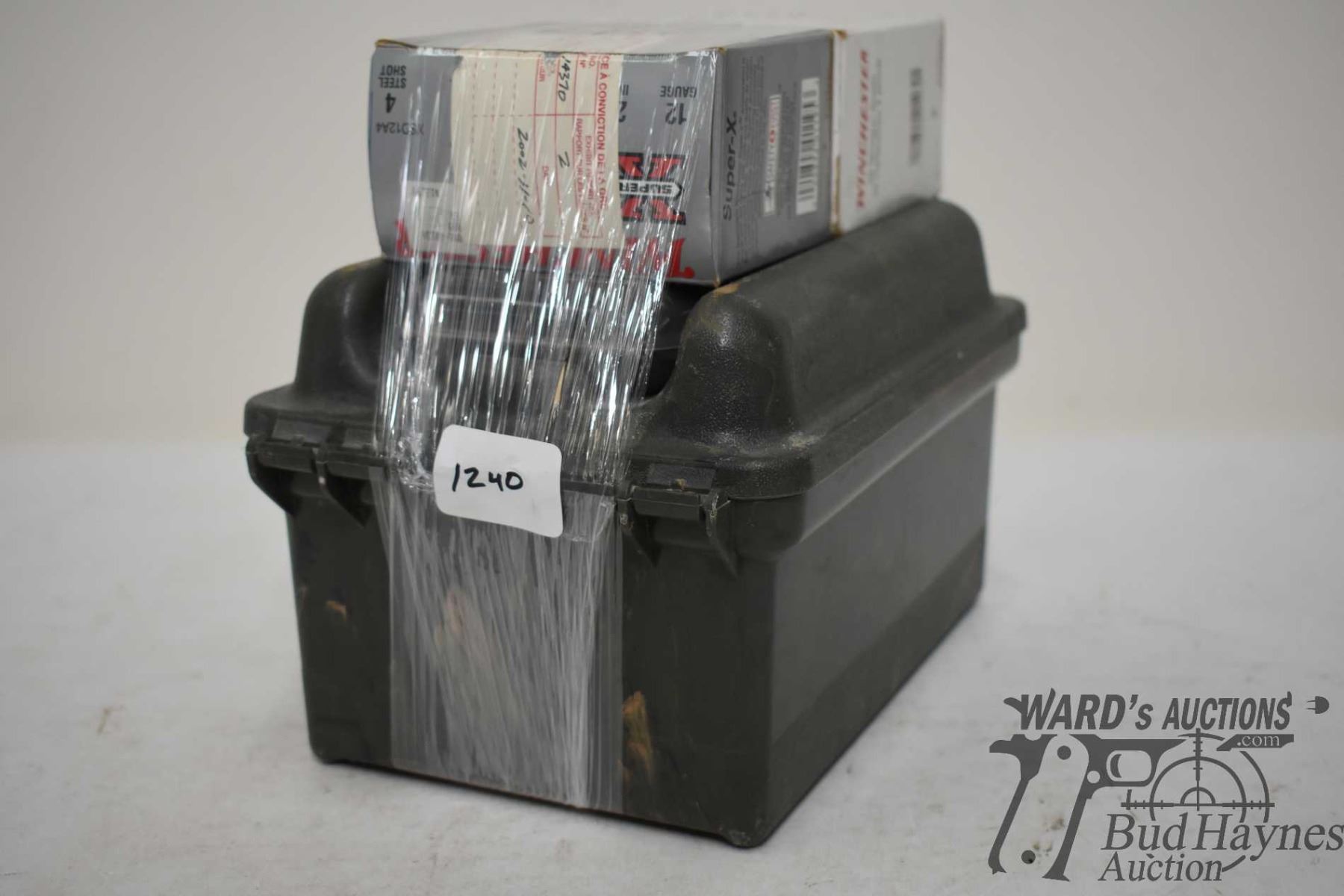 Two full 25 count boxes of Winchester 12 GA 2 3/4" #7 1/2 heavy gameload, one full 10 count box Hornady Zombie 12 GA 2 3/4" 00 Z-SHOT, one full 5 count box of Federal 12 GA 2 3/4" buckshot, one full 5 count box of Remington 12 GA 3" slugger, plus approx. 40 12 GA 2 3/4" reloads