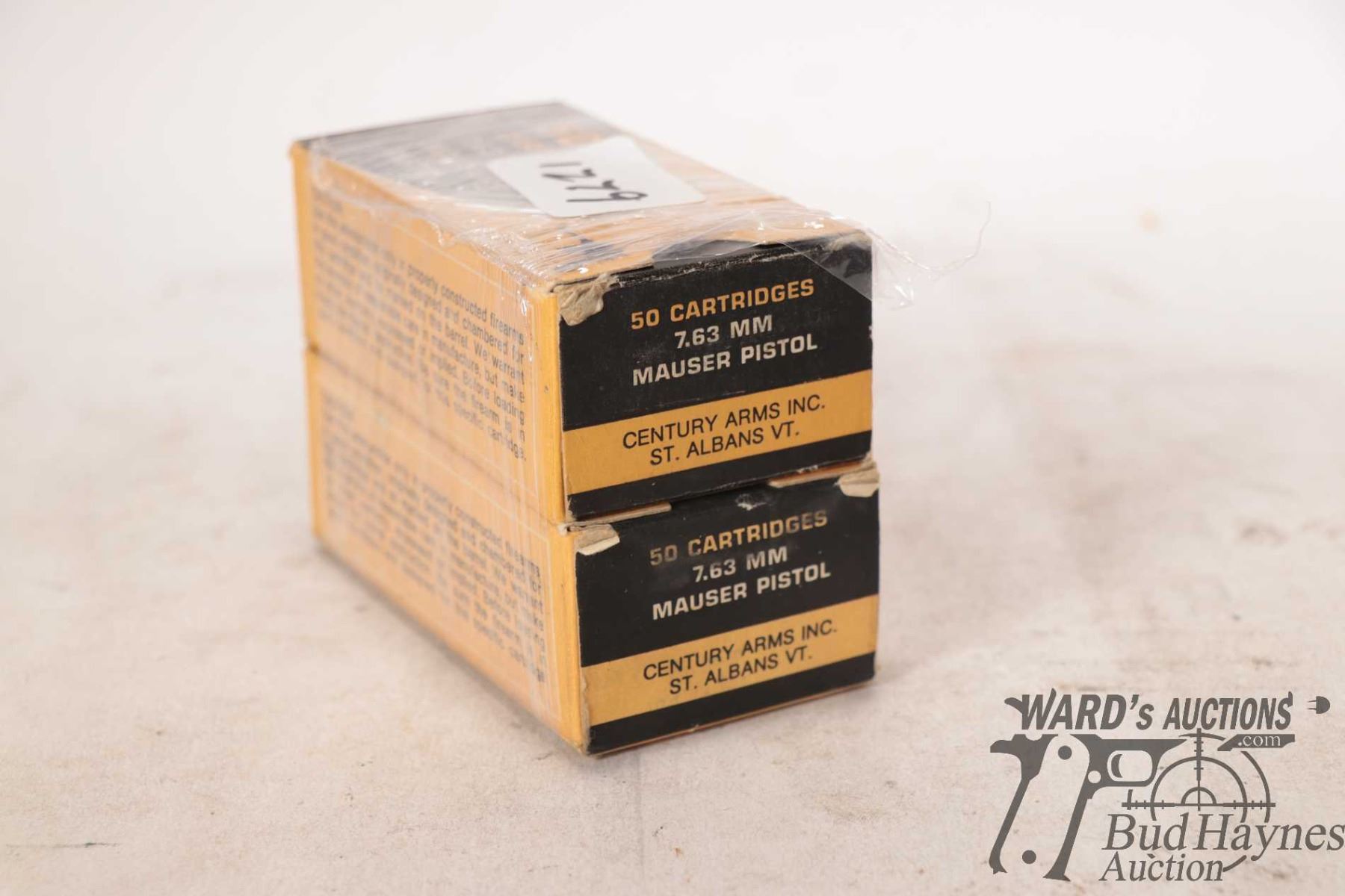Two full vintage 50 count boxes of Century Arms Two full vintage 50 count boxes of Century Arms 7.63mm mauser pistol