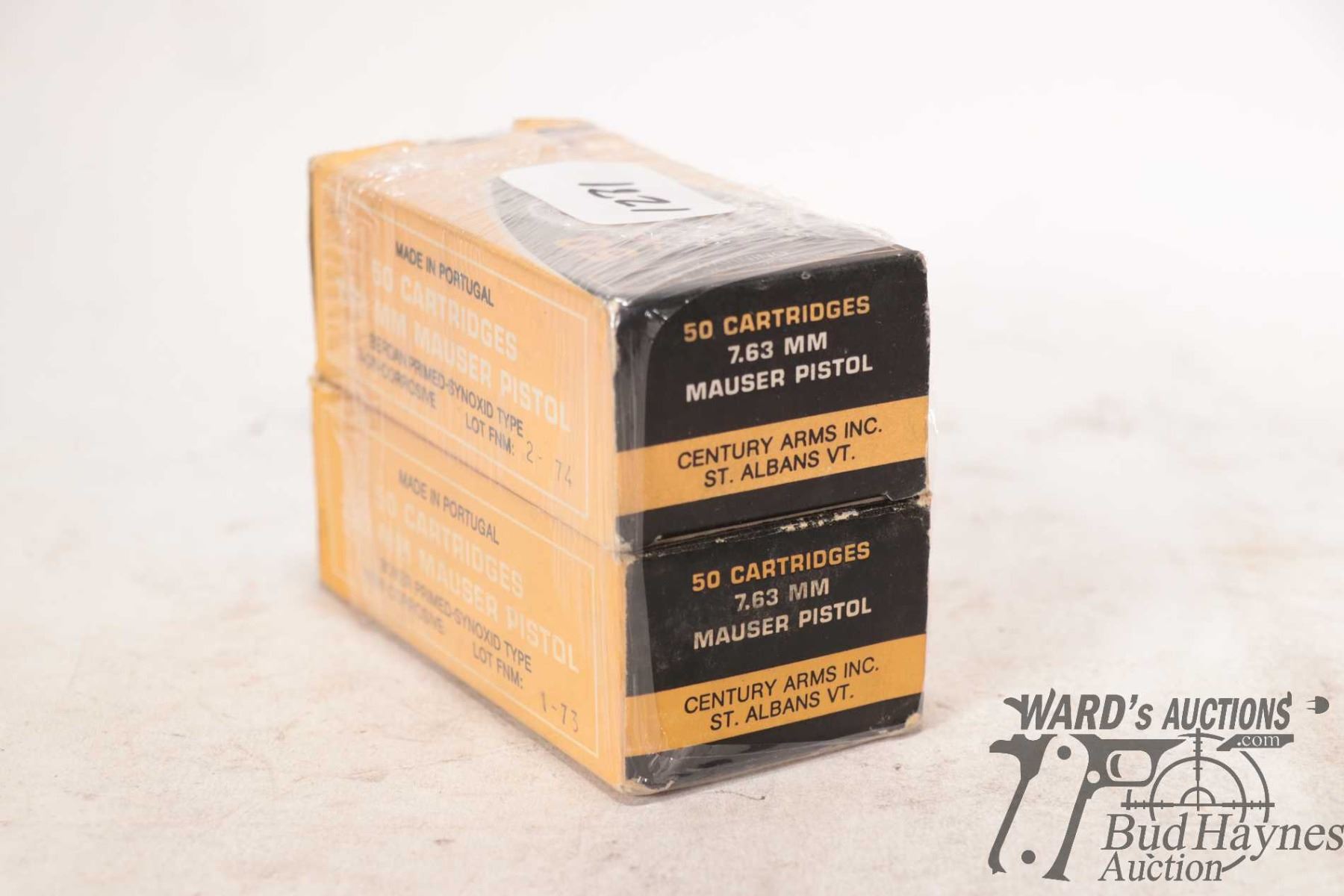 Two full vintage 50 count boxes of Century Arms Two full vintage 50 count boxes of Century Arms 7.63mm mauser pistol