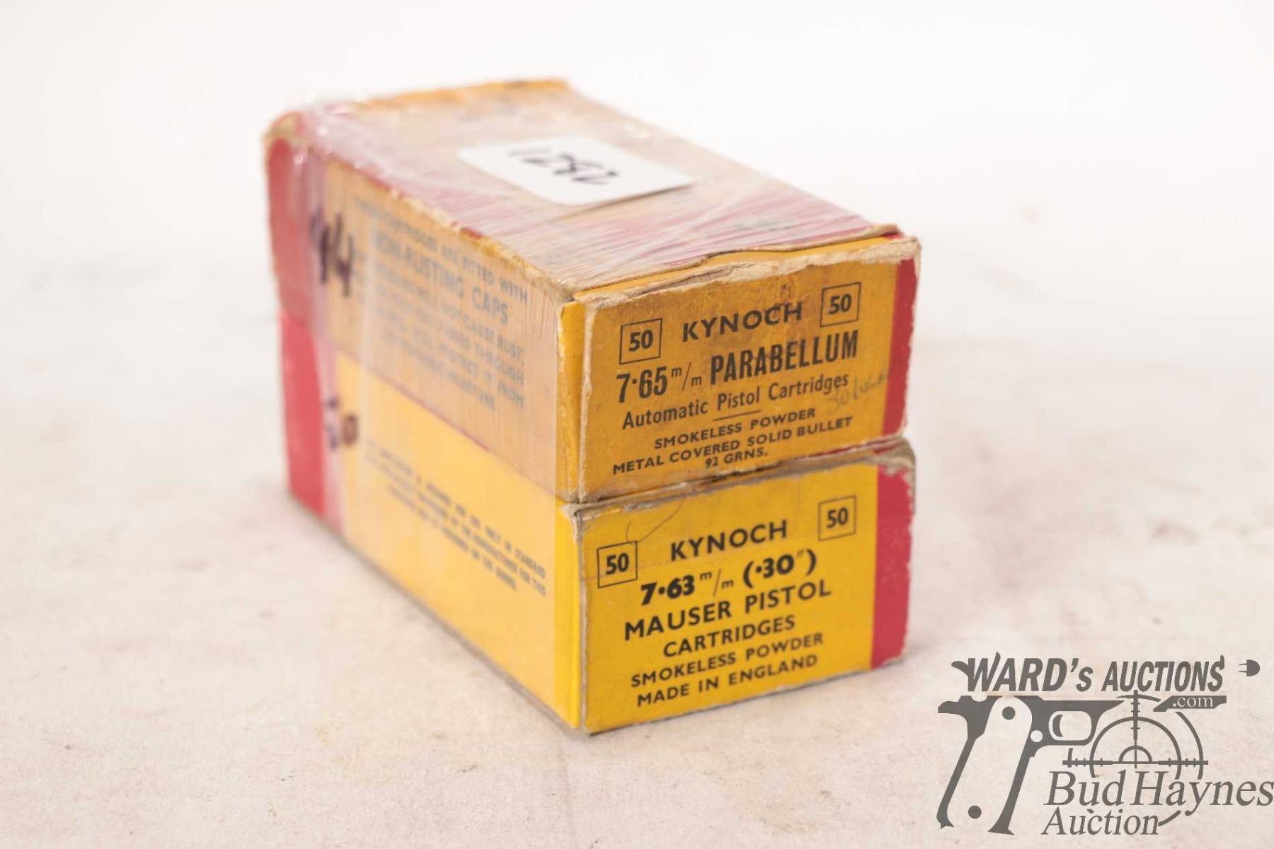 Two full vintage 50 count boxes of Kynoch Two full vintage 50 count boxes of Kynoch including one 7.63 mauser pistol and one 7.65 parabellum automatic pistol cartridge