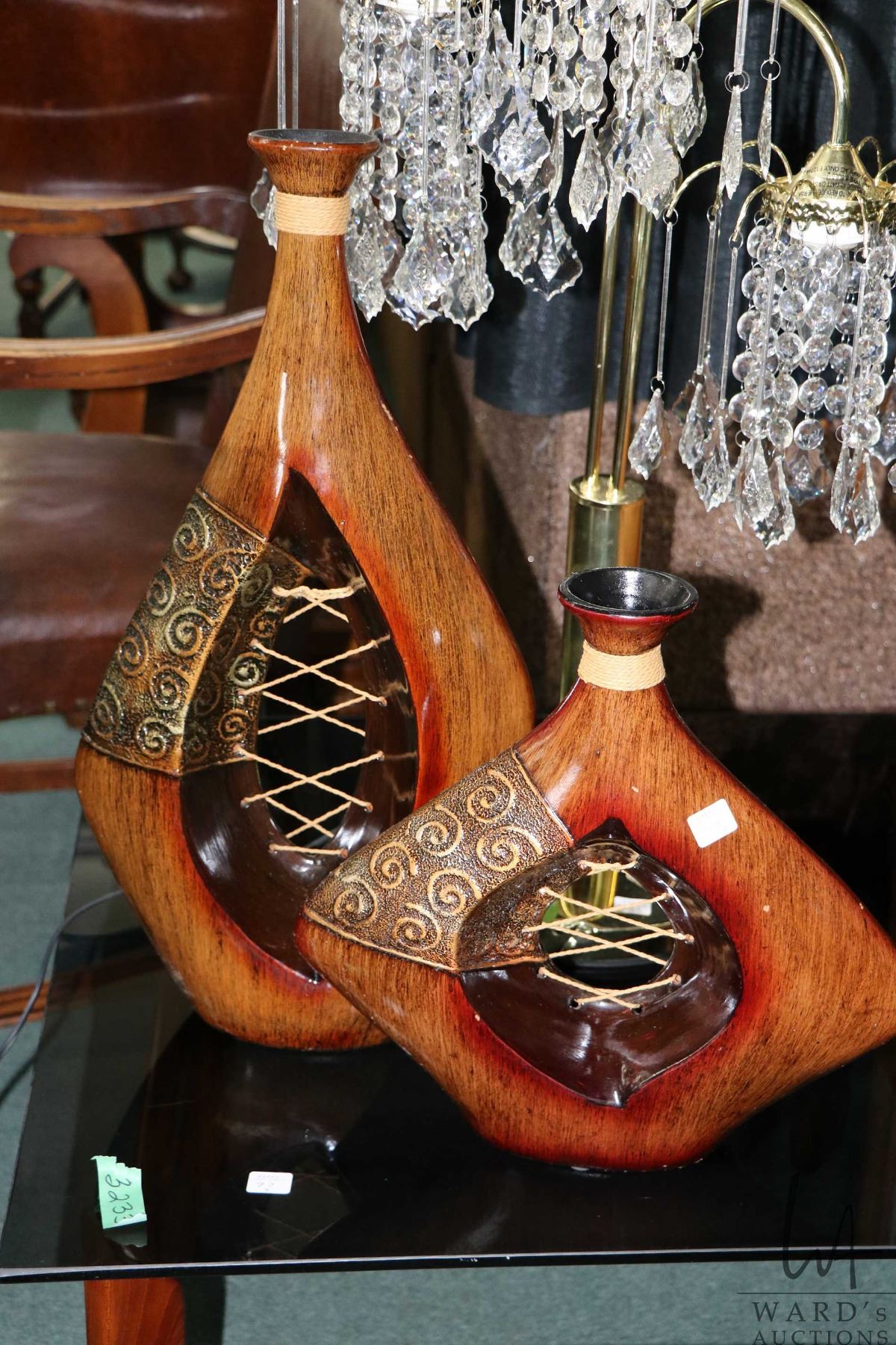 Two glazed pottery vases including a 14" and a 22 1/2". Note: Not Available For Shipping. Local Pickup Only