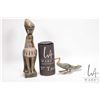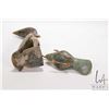 Two hand carved Egyptian sculptures including "God Horas" falcon 9 1/4" and a stone bird with bronze feet and beak