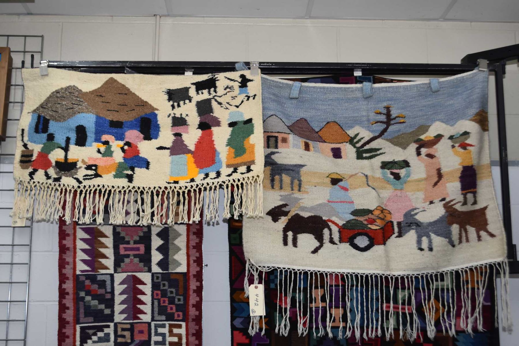Two hand woven mohair wall hangings from Lesothos, South Africa including a 30" X 40" and a "19" X 40"
