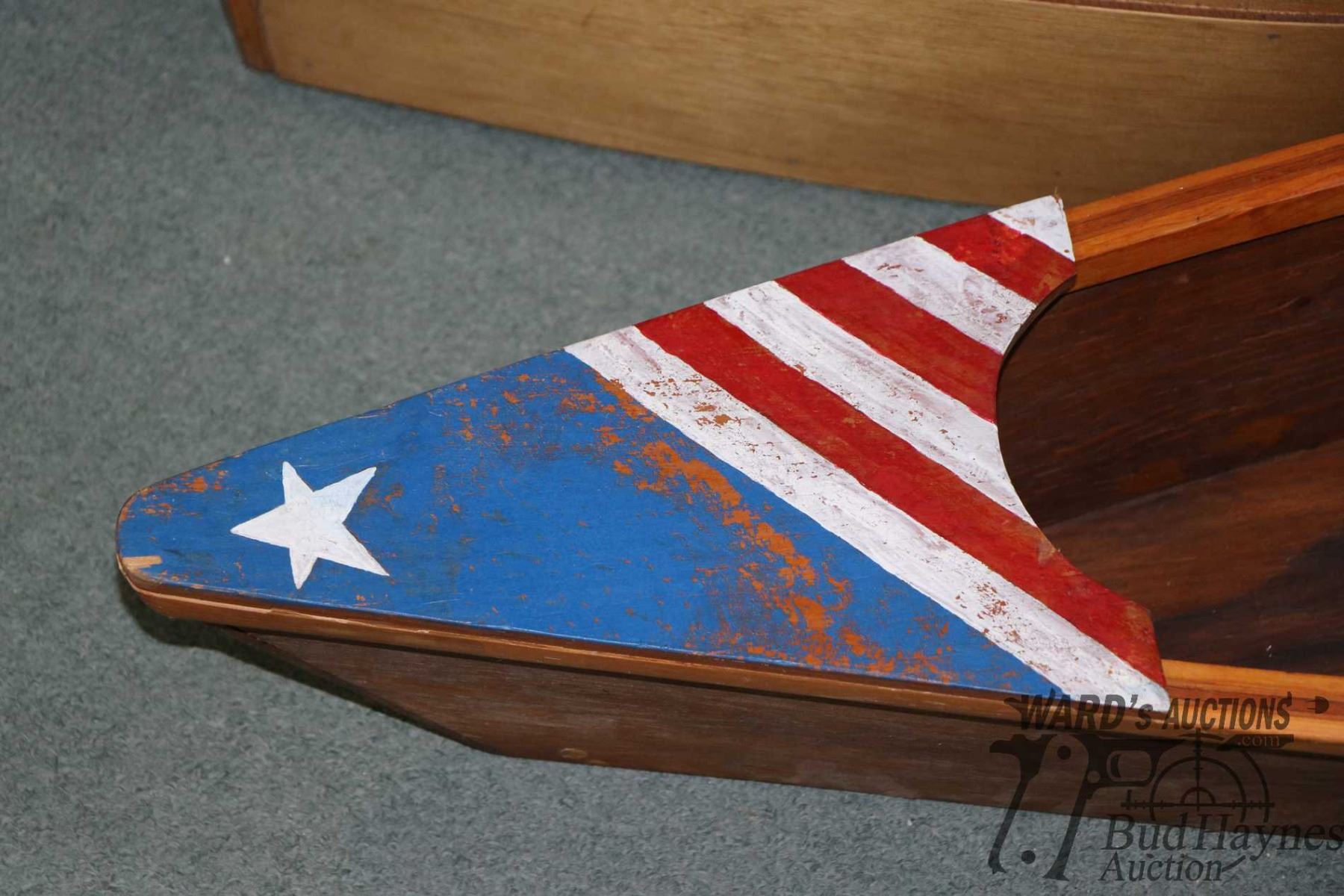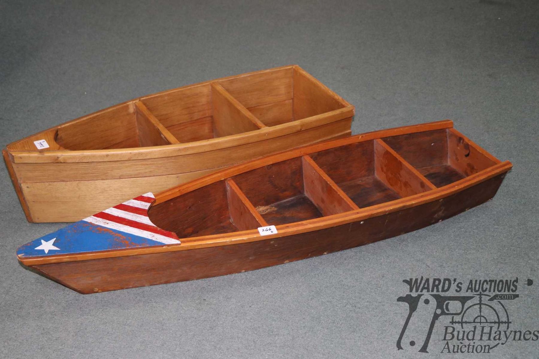 Two handcrafted boat motif open shelves including 34" and a 44" high