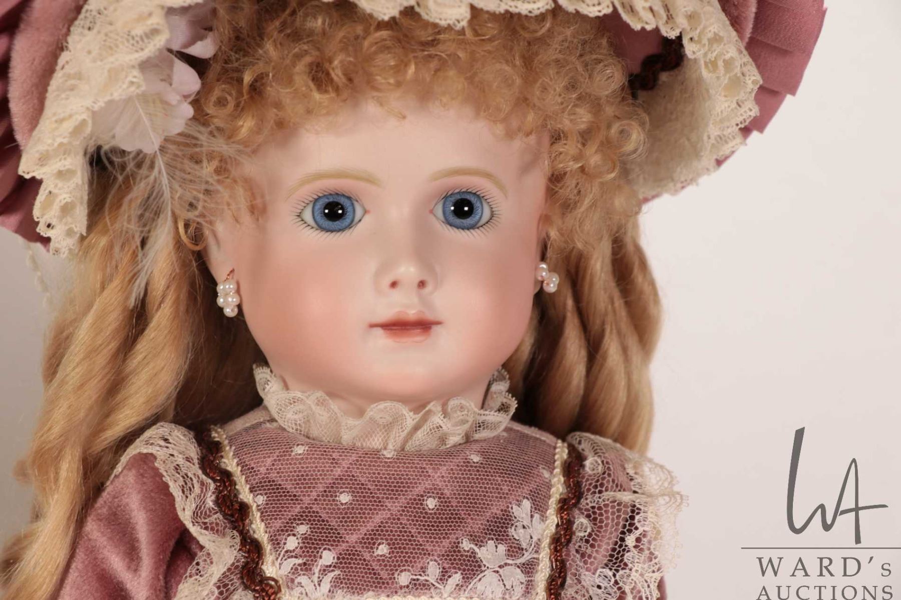 Two handmade reproduction dolls including A. T. 14 "Rentelle" with bisque head, threaded blue glass