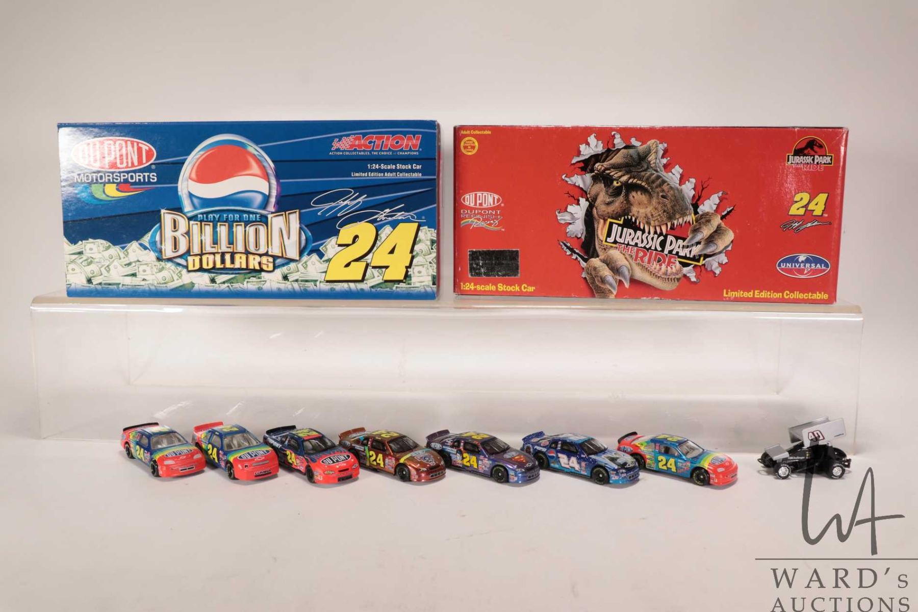 Two limited edition Action 1: 24 scale Action Jeff Gordon die cast cars including Play for One Billion Dollars, Jurassic Park the Ride plus and seven 1: 64 scale die cast cars, various themes