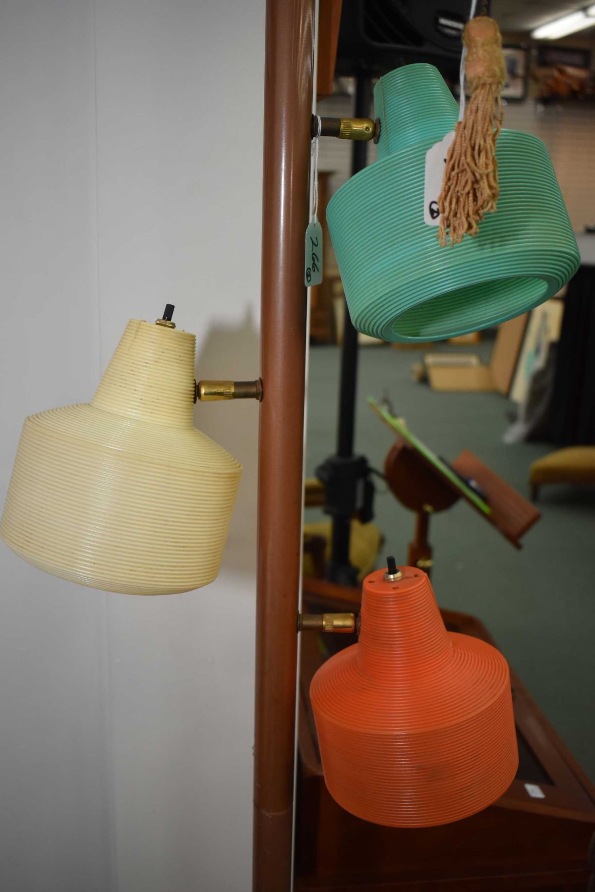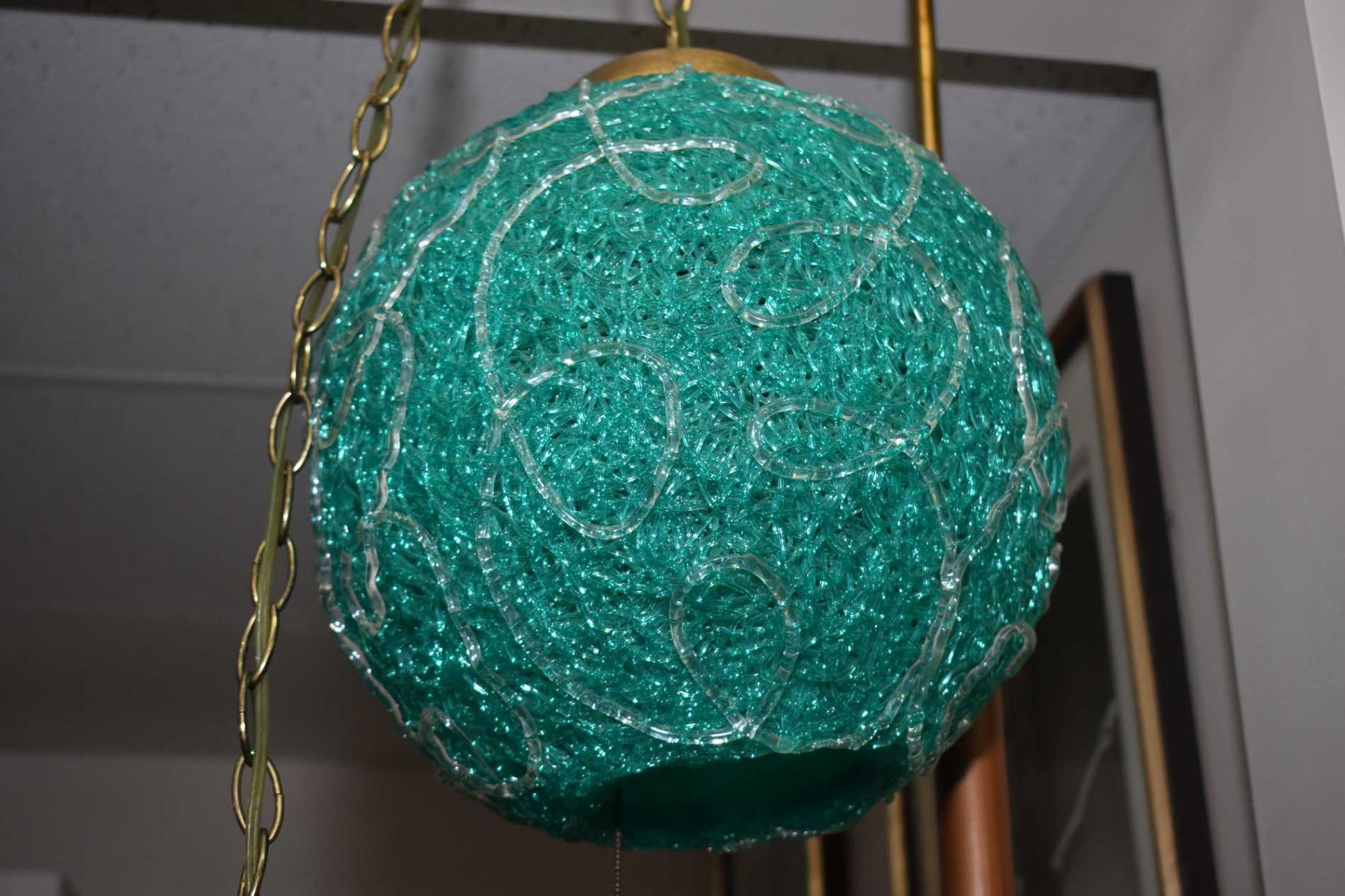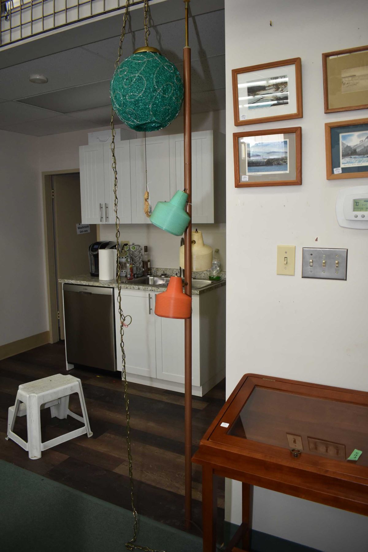 Two mid century modern lamps including spaghetti string hanging ceiling swag and a three branch pole fixture that installs between floor and ceiling