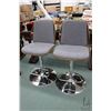 Two modern mid century style adjustable high back bar stools on chrome bases, seat height adjustable from 26"-34"