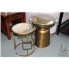 Two modern round side tables, one with burnished gold metal frame 17" H X 14" D and one with beveled