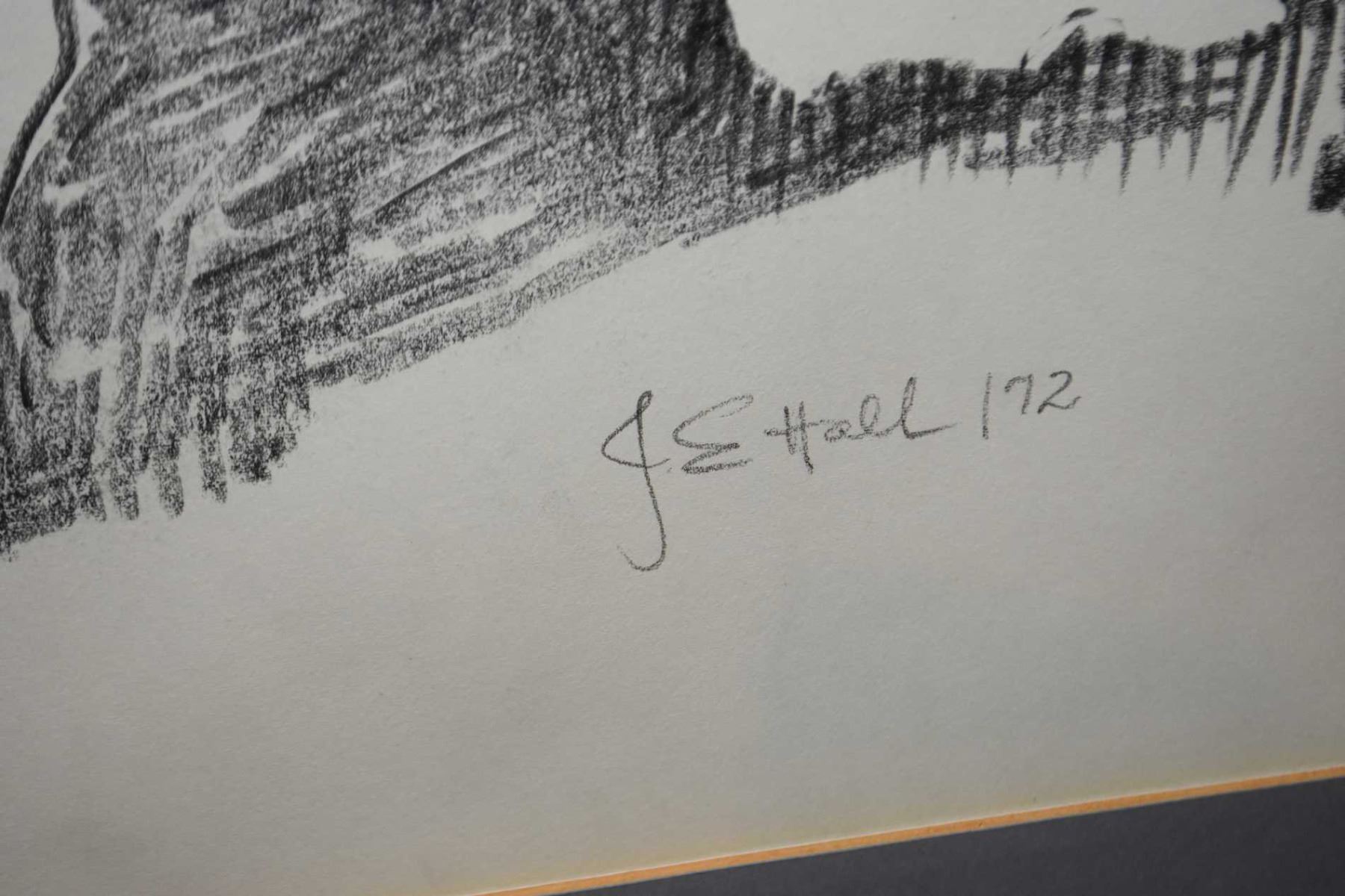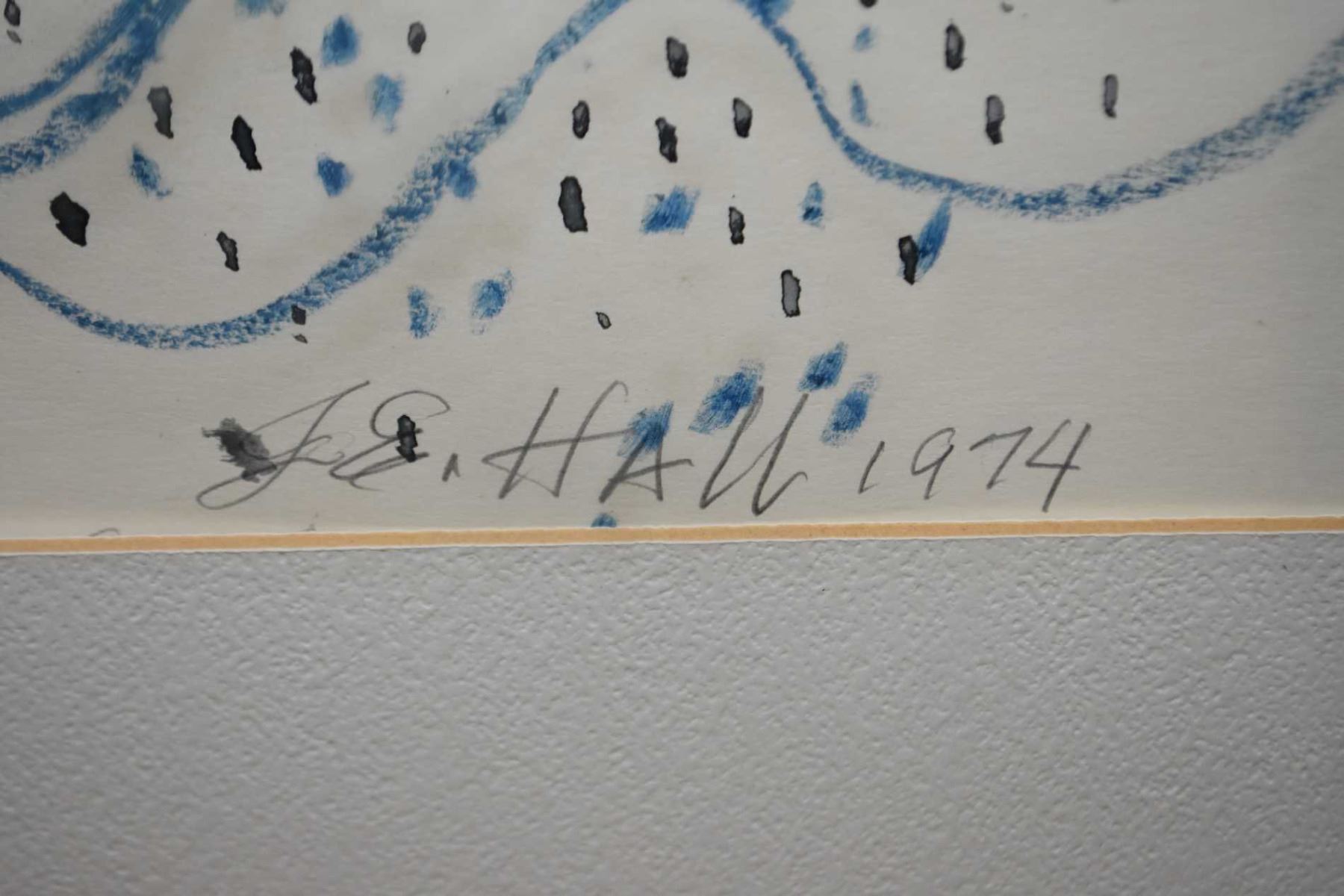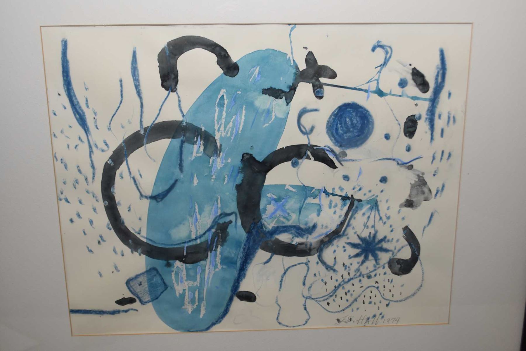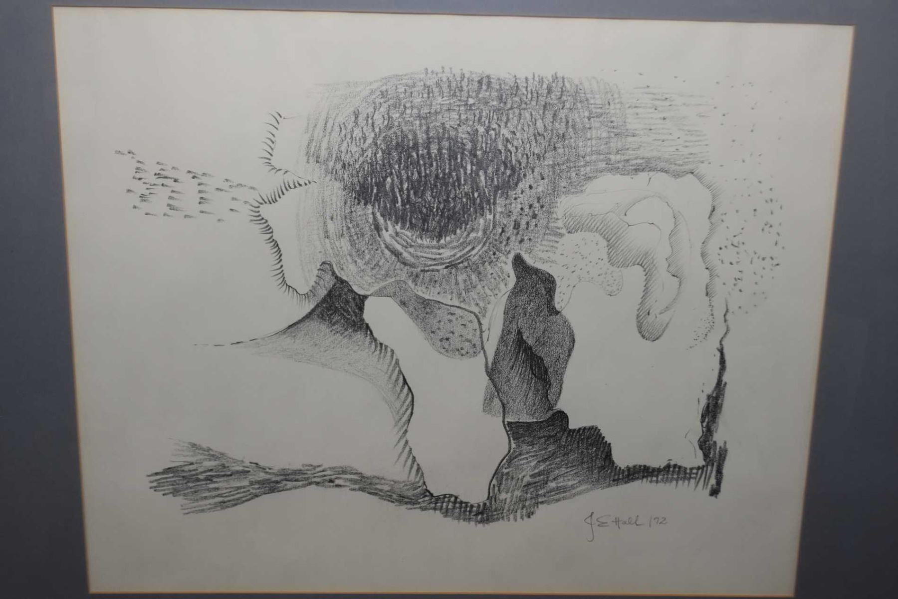 Two original framed artworks including abstract watercolour on paper and abstract pencil drawing both signed by artist G.E. Hall, both 18" X 22"