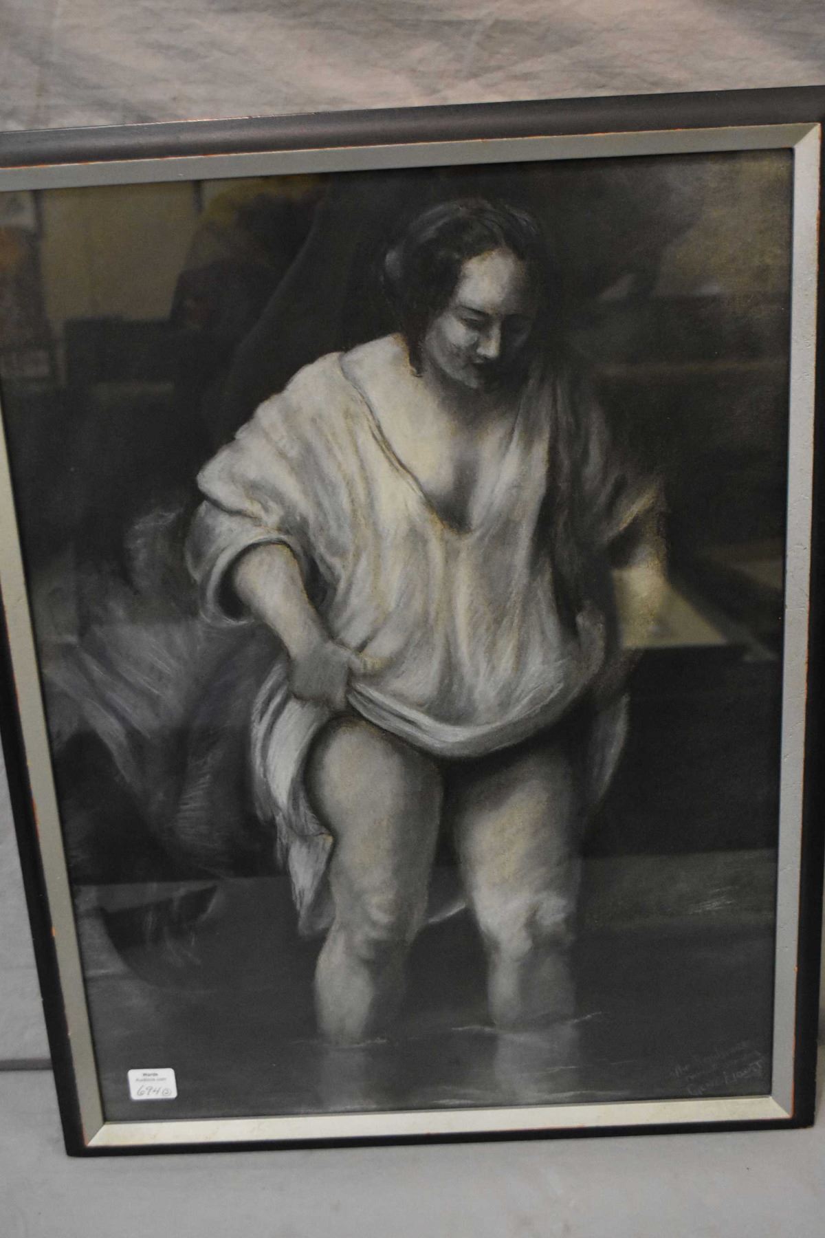 Two original framed artworks including charcoal painting after a Rembrandt signed by artist Gene Eisert 20" X 15" plus a acrylic on canvas nude signed on verso by artist Gene Eisert 30" X 22"