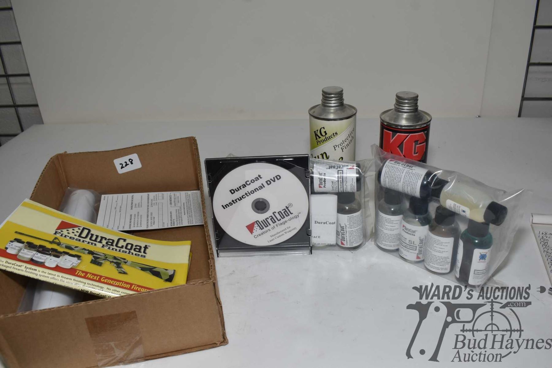 Two packs of Duracoat firearm finishes, layout paper, instructional CD and two cans of cleaner protectant