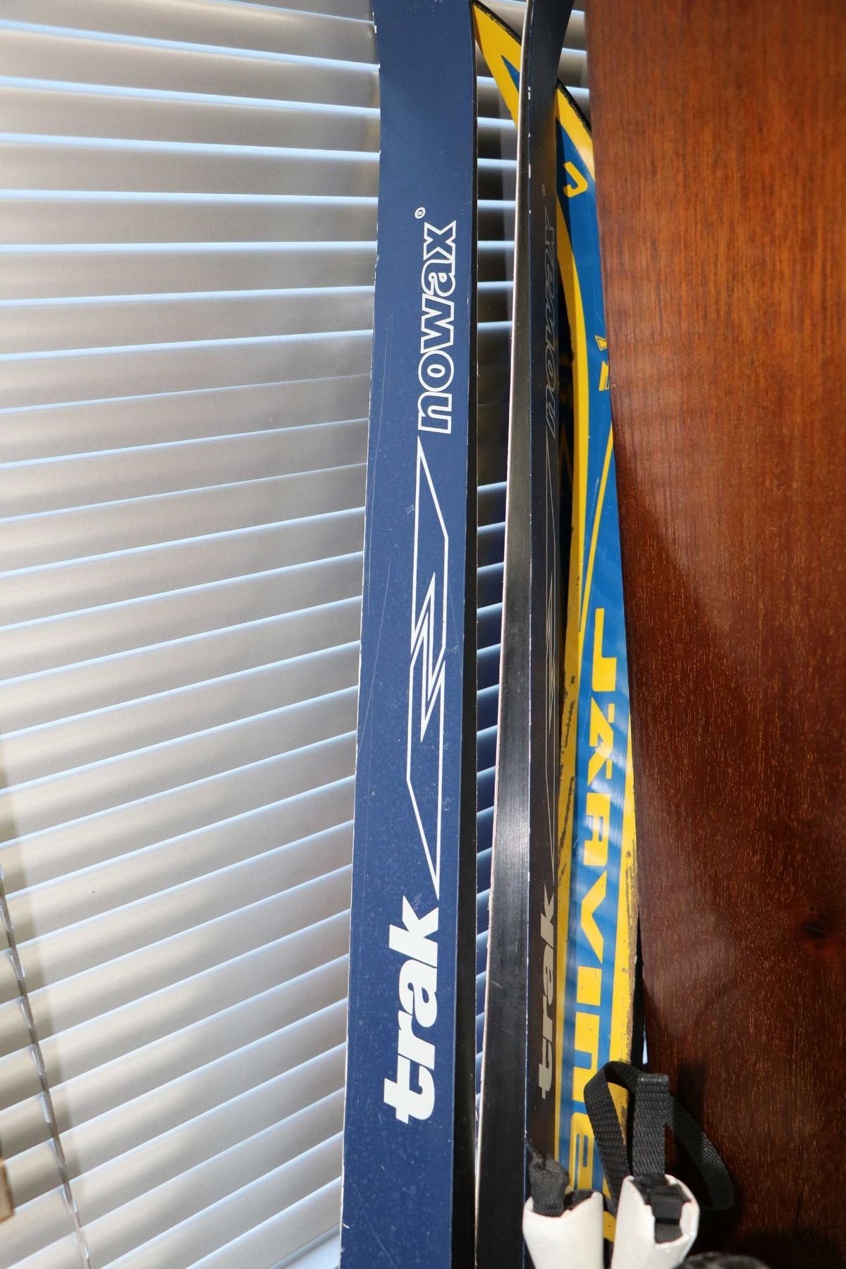 Two pairs of cross country skis including Nowax Trak no. 205 with poles and Powerstep Jarvinen no. 1